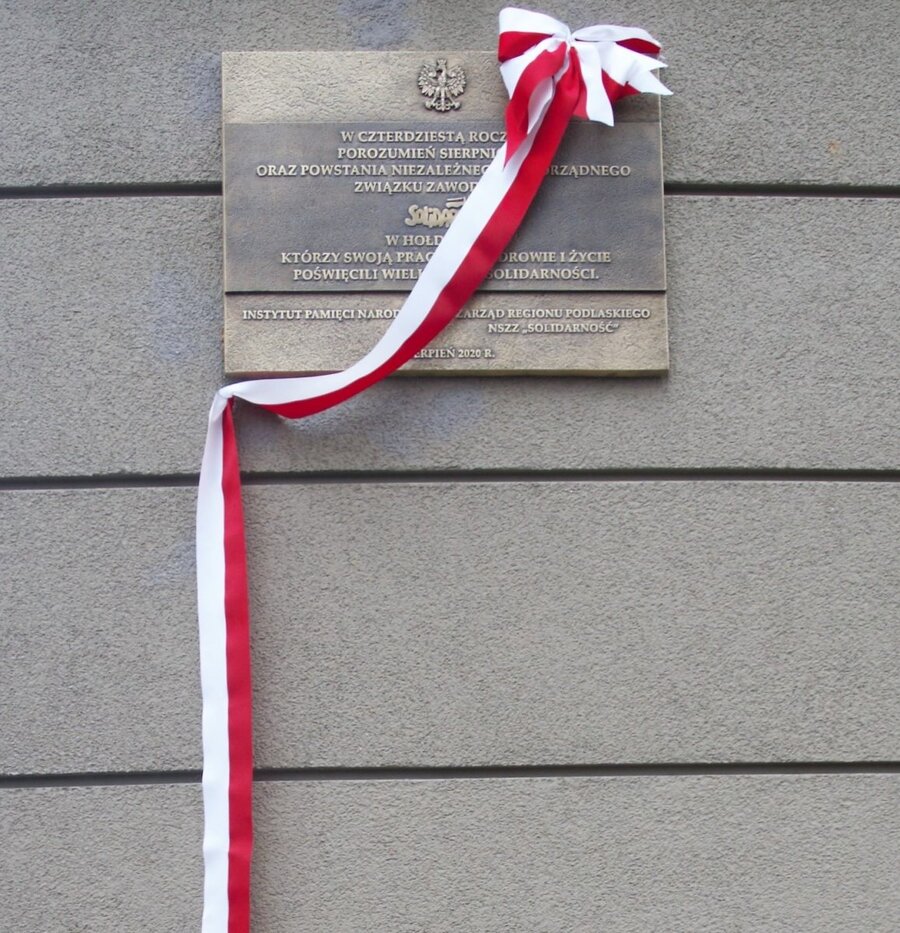 W 40. rocznicę powstania „Solidarności” białostocki oddział IPN ufundował tablicę „W hołdzie tym, którzy swoją pracę, siły, zdrowie i życie poświęcili wielkiej idei Solidarności".