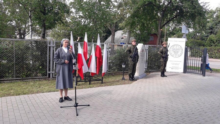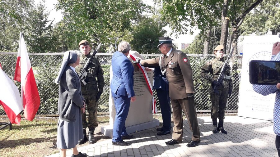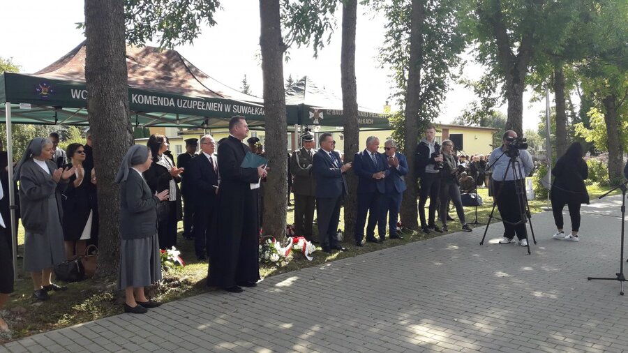 Po mszy świętej i wciągnięciu sztandaru i odśpiewaniu hymnu, upamiętnienie odsłonili poseł na Sejm RP Jarosław Zieliński, Siostra dr Małgorzata Łukowska przedstawicielka Inspektorii Warszawskiej Zgromadzenia Córek Maryi Wspomożycielki, pułkownik Jarosław Kowalewski Wojskowy Komendant Uzupełnień w Suwałkach oraz dr Jarosław Schabieński naczelnik OBUWiM IPN w Białymstoku.