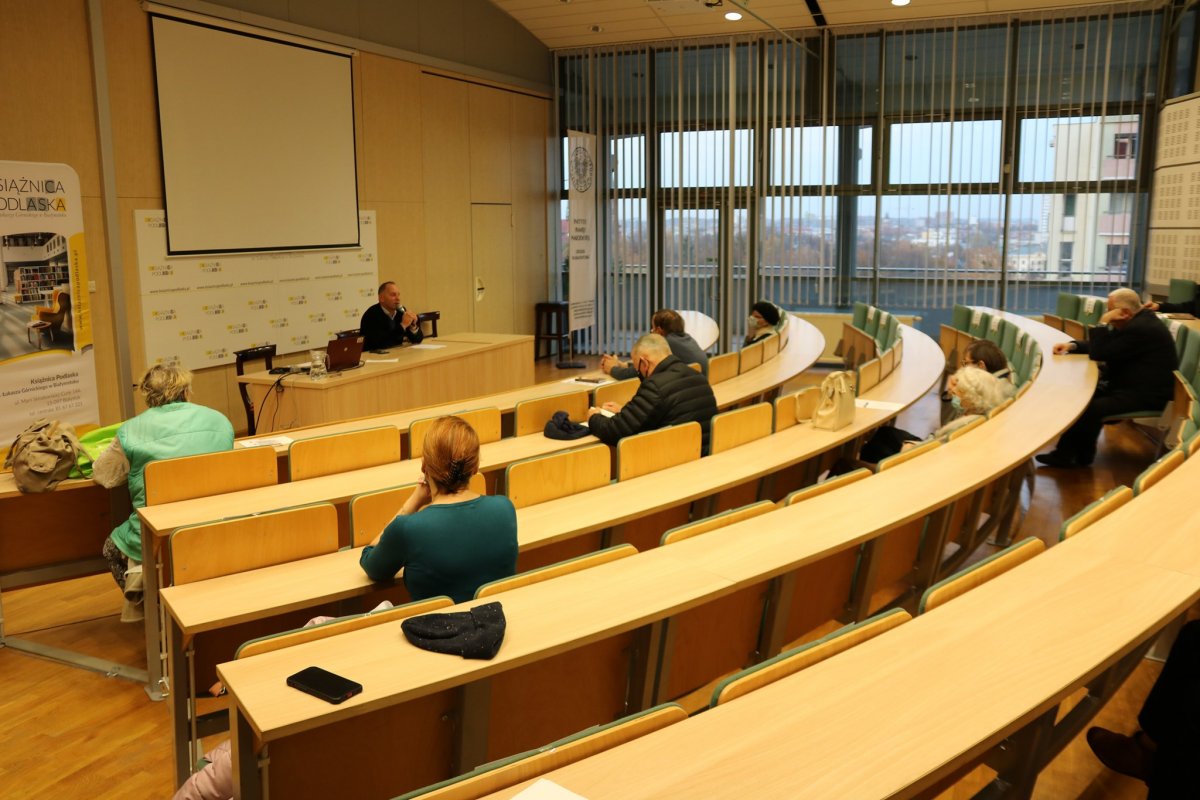 W dniu 26 października w Książnicy Podlaskiej, odbyło się kolejne spotkanie w ramach Przystanku Historia Białystok. Jego gościem był dr Marcin Markiewicz z Oddziałowego Biura Badań Historycznych IPN w Białymstoku, który przybliżył zgromadzonym wydarzenia z października 1956 r. w skali ogólnopolskiej, jak i regionalnej. Przypomniał, iż katalizatorem zmian na Białostocczyźnie, podobnie jak w całym kraju, był XX Zjazd KPZR, a od kwietnia 1956 r. społeczeństwo coraz odważniej wyrażało swoje poglądy na temat bieżącej sytuacji społeczno-politycznej oraz oczekiwało zmian w wielu dziedzinach życia. Kulminacją białostockiego Października był wiec z 24 października 1956 r. na dziedzińcu Akademii Medycznej, który przerodził się w demonstrację pod gmachem KW PZPR. Wówczas również mieszkańcy Białostocczyzny zamanifestowali swoje poparcie dla trwającego od 23 października 1956 r. powstania węgierskiego, którego uczestnicy domagali się przywrócenia wolności słowa i innych swobód obywatelskich oraz pełnej niezależności od ZSRS. Wówczas w Białymstoku na wieść o wydarzeniach na Węgrzech – starciach z władzą oraz ofiarach, rozpoczęła się zbiórka darów i krwi. W ramach obchodów wydarzeń z października 1956 r. Delegacja Oddziału IPN w Białymstoku złożyła kwiaty pod tablicą upamiętniającą solidarność mieszkańców z narodem węgierskim w 1956 roku.