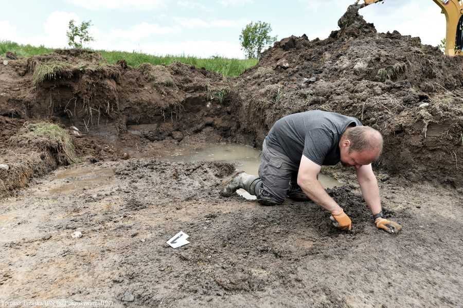 Marianka (pow. suwalski): Szczątki ludzkie w miejscu domniemanego pochówku ofiar zbrodni niemieckiej, Fot. BPiI