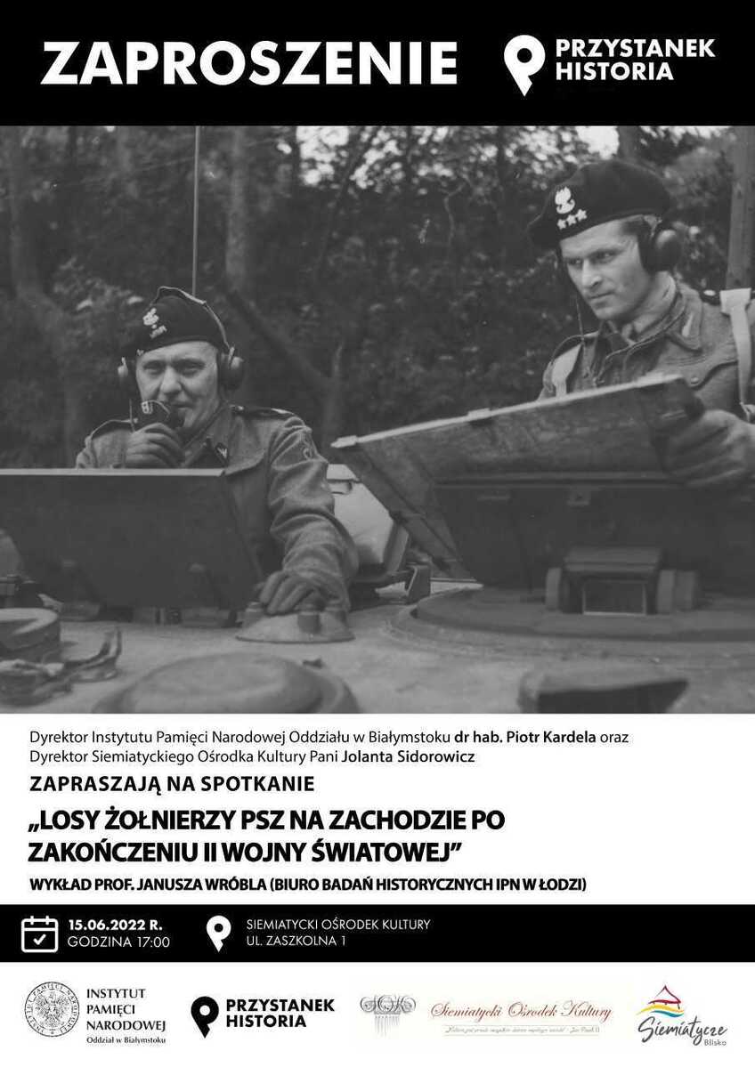 Przystanek Historia – losy żołnierzy PSZ na Zachodzie po zakończeniu II wojny światowej - Siemiatycki Ośrodek Kultury 15 czerwca 2022. -