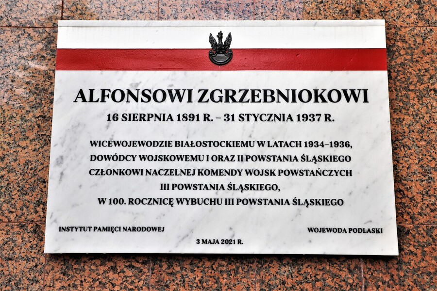 Delegacja w składzie: dyrektor Oddziału IPN w Białymstoku dr hab. Piotr Kardela oraz naczelnik Oddziałowego Biura Upamiętniania Walk i Męczeństwa IPN dr Jarosław Schabieński złożyła kwiaty pod tablicą pamiątkową poświęconą Alfonsowi Zgrzebniokowi - byłemu wicewojewodzie białostockiemu w okresie międzywojennym.