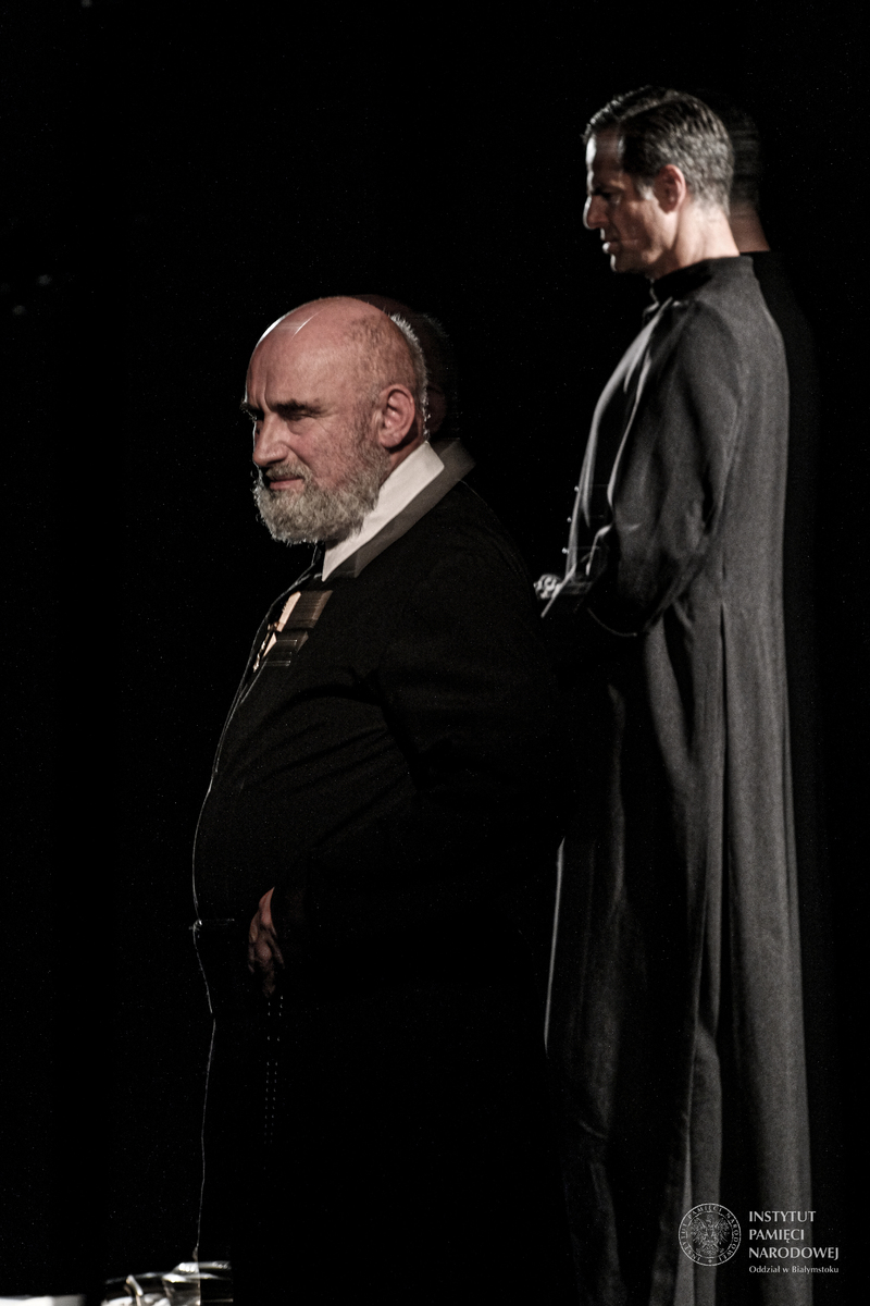 Teatr Nie Teraz przybliżył licznie przybyłym niezwykłą wizję spotkania dwóch postaci: XVII-wiecznego jezuity - św. Andrzeja Boboli, oraz XX-wiecznego kapelana »Solidarności«, bł. ks. Jerzego Popiełuszki. Sztuka teatru pozwala przekraczać czas i przestrzeń, daje możliwość spotkań, które w rzeczywistości nie mogłyby się zdarzyć.