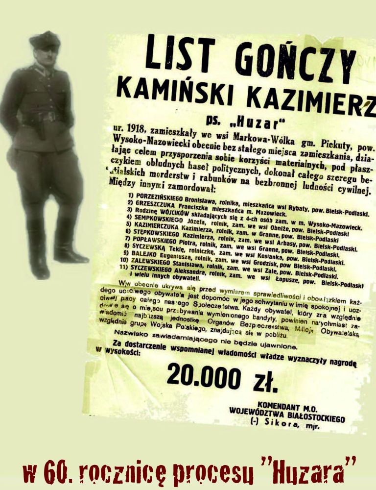 20 marca 2013 r. o godz. 16.30 na białostockim Przystanku Historia (Archiwum i Muzeum Archidiecezjalne w Białymstoku, ul. Warszawska 48) odbędzie się spotkanie z okazji 60. rocznicy skazania na śmierć w procesie pokazowym kpt. Kazimierza Kamieńskiego „Huzara”. O działalności kpt. Kamieńskiego opowie Piotr Łapiński z Oddziałowego Biura Edukacji Publicznej IPN w Białymstoku. Zostanie również wyświetlony film dokumentalny pt. „Huzar” w reż. Adama Sikorskiego (TVP/IPN 2007).