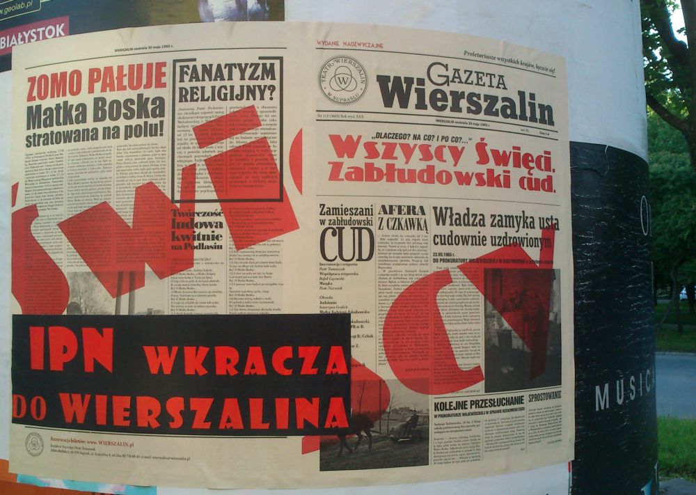 Burzliwy przebieg miała dyskusja wokół spektaklu Teatru Wierszalin pt. „Wszyscy święci. Zabłudowski cud” w reżyserii Piotra Tomaszuka, zorganizowana z inicjatywy białostockiego oddziału IPN. Jej uczestnikami, oprócz reżysera spektaklu, byli także prof. Mariusz Mazur z Uniwersytetu Marii Curie-Skłodowskiej, religioznawca z Uniwersytetu w Białymstoku dr Maciej Krzywosz (autor książki o mariofanii zabłudowskiej) oraz Jan Leończuk, świadek zdarzeń opowiadanych w spektaklu, poeta, dyrektor Książnicy Podlaskiej.