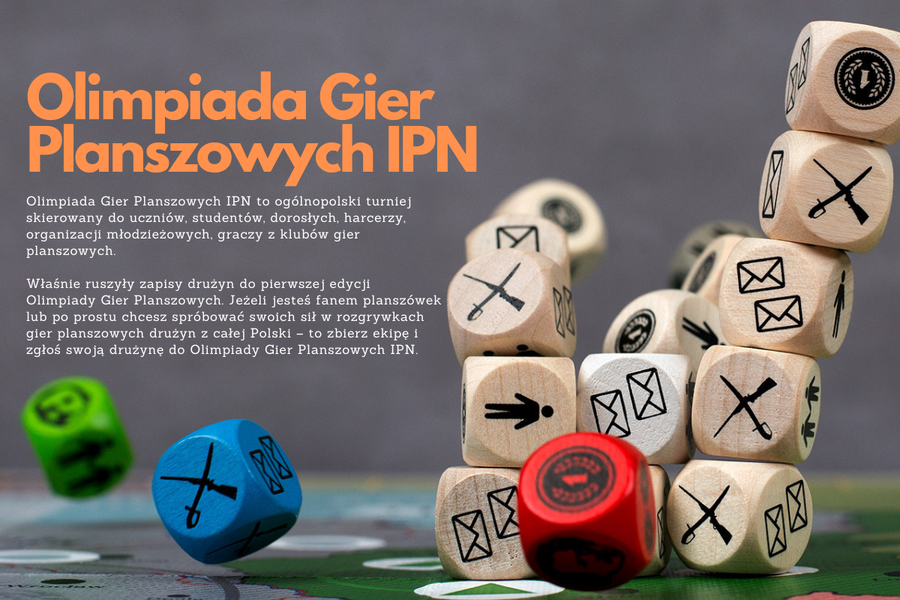 Zapraszamy do udziału w I Olimpiadzie Gier Planszowych IPN, zgłaszać się należy przez formularz (każda drużyna ze szkoły) https://olimpiadagier.org/zapisy/#formularz.