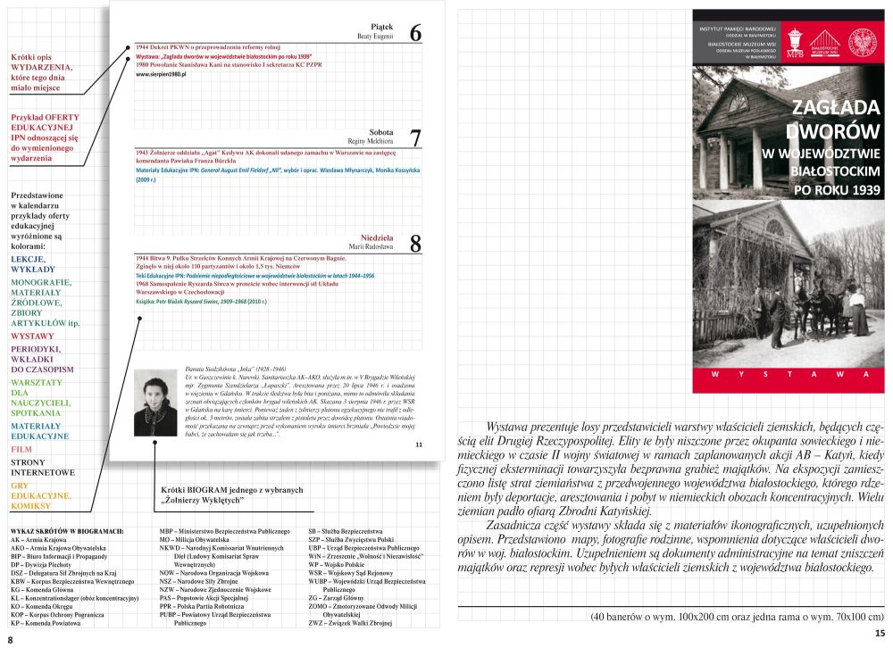 Istotnym rozszerzeniem podstawowej funkcji Kalendarza jest pełna oferta edukacyjna OBEP IPN w Białymstoku. M.in. przybliżone zostały wystawy przygotowane przez OBEP wraz ze szczegółami technicznymi ułatwiającymi zaplanowanie ich ekspozycji w szkołach.