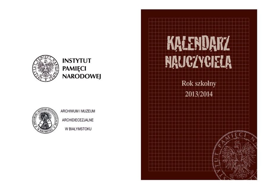 Pragniemy być obecni i pomocni w każdym dniu Państwa pracy, dlatego wraz z ofertą edukacyjną przekazujemy kalendarz na rok szkolny 2013/2014. W kalendarium historycznym, które – mamy nadzieję – zechcą Państwo wykorzystywać do prowadzenia terminarza, znalazły się daty istotne dla najnowszych dziejów naszego regionu. W zestawieniu nie pominięto wydarzeń o charakterze ogólnopolskim i międzynarodowym, szczególnie tych, które istotnie wpłynęły na losy naszego kraju. Propozycje edukacyjne Instytutu towarzyszą większości wydarzeń wspomnianych w kalendarium. Zdajemy sobie sprawę, że jedynie nieliczne będą mogły służyć pracy z uczniami. Mamy jednak nadzieję, że przydadzą się w działalności kół historycznych oraz będą pomocne w Państwa przygotowaniu do zajęć.