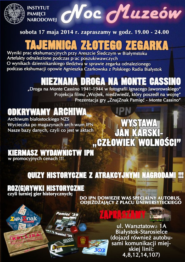 Już dziś białostocki oddział IPN zaprasza na tegoroczną „Noc Muzeów", która odbędzie się w sobotę 17 maja 2014 r.!