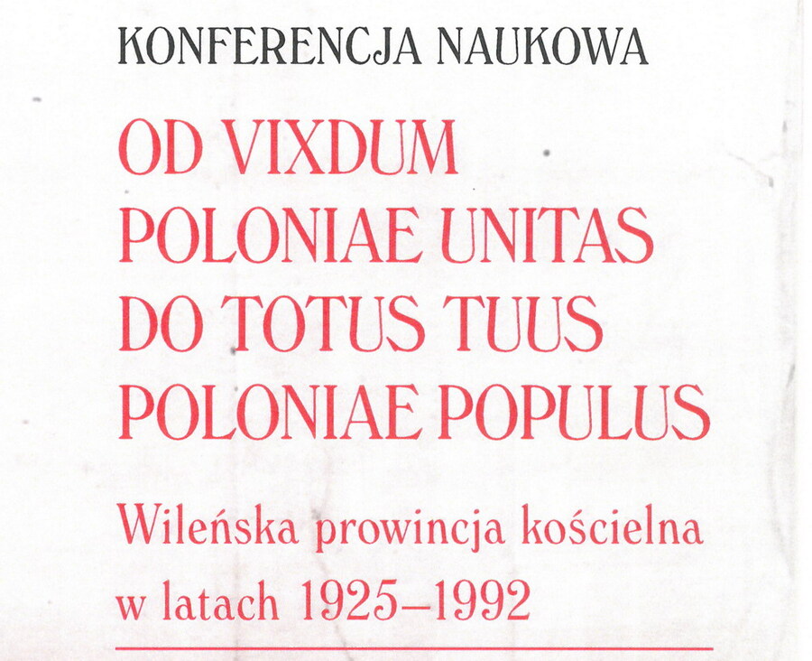 Konferencja naukowa „Od »Vixdum Poloniae unitas« do »Totus Tuus Poloniae populus«. Wileńska prowincja kościelna w latach 1925–1992” – Białystok, 18–21 października 2015
