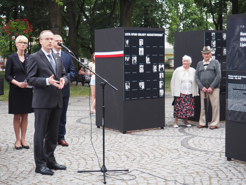 Od złożenia kwiatów przed tzw. Domem Turka w Augustowie (dawną siedzibą UB) rozpoczęły się obchody 70. rocznicy Obławy Augustowskiej. Kwiaty złożył prezes IPN dr Łukasz Kamiński w towarzystwie Barbary Bojaryn-Kazberuk, dyrektora białostockiego oddziału IPN. Obecny był także wicewojewoda białostocki Wiesław Żyliński, burmistrz Augustowa Wojciech Walulik, starosta Jarosław Szlaszyński oraz przedstawiciele lokalnych środowisk patriotycznych. Następnie w augustowskiej bazylice mszę świętą w intencji ofiar Obławy odprawił JE ks. bp Romuald Kamiński. Po nabożeństwie, w którym uczestniczyły także augustowskie rodziny ofiar, odbyło się otwarcie najnowszej wystawy Oddziałowego Biura Edukacji Publicznej IPN w Białymstoku pt. „Nowe zniewolenie. Obława Augustowska. Lipiec 1945”. Autorką wystawy jest dr Ewa Rogalewska, zaś pomysłodawcą koncepcji artystycznej – prof. Andrzej Dworakowski. Wystawę usytuowano na Rynku Króla Zygmunta Augusta (można ją zwiedzać do końca sierpnia). Podczas otwarcia wystawy rozpowszechniano specjalny dodatek domiesięcznika „Pamięć.pl”, w całości poświęcony Obławie. Głos zabrali prezes IPN, burmistrz Augustowa, dyrektor Oddziału IPN w Białymstoku, a także Autorka wystawy.