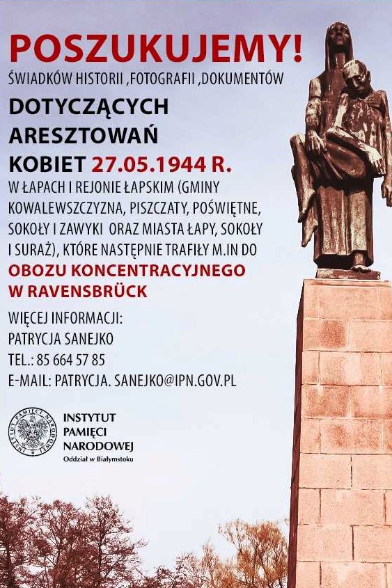 POSZUKUJEMY - Świadków historii, fotografii, dokumentów - dotyczących ARESZTOWAŃ KOBIET 27 MAJA 1944 r. w Łapach