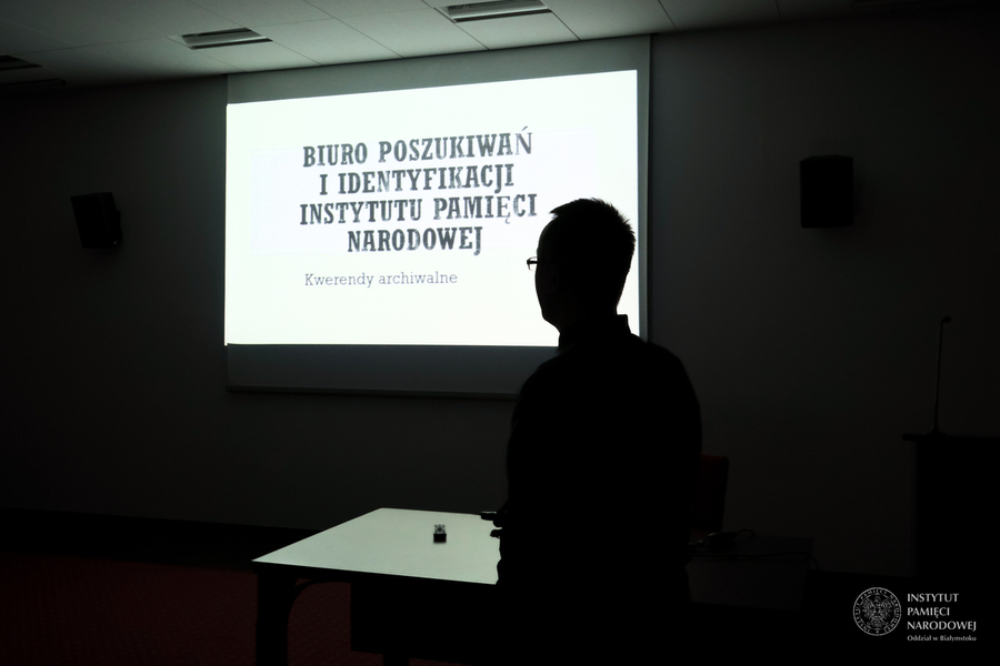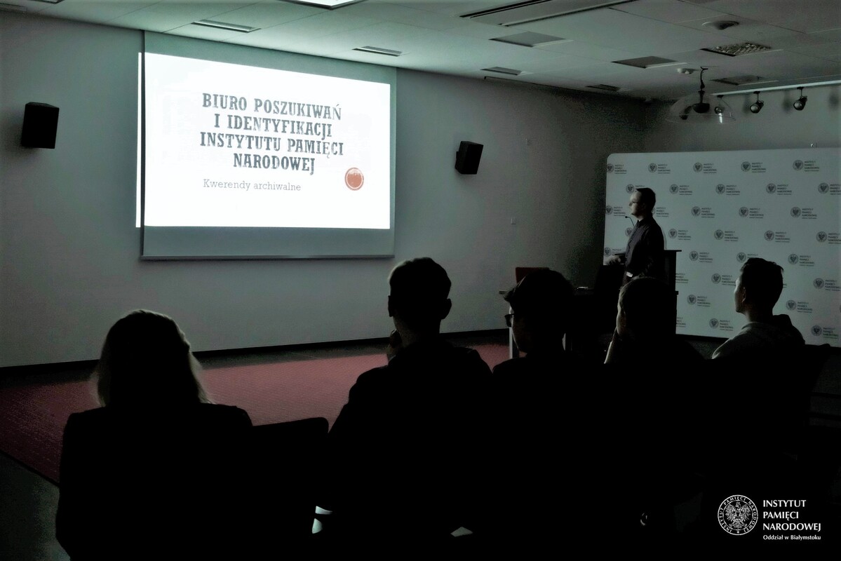 Wprowadzeniem do spotkania był wykład Jacka Hryniewickiego ( pracownika Biura Poszukiwań i Identyfikacji w Białymstoku), który wprowadził uczniów w proces kwerendy archiwalnej, a także opowiedział o dokumentach i zawartych w nich opisach, które przydają się podczas prowadzenia prac przez archeologów i antropologów. Na zakończenie spotkania – młodzież wcieliła się w rolę archeologów poprzez udział w „ Śledztwie Katyńskim” – ich zadaniem było odszyfrowanie imienia i nazwiska postaci, która zginęła podczas Zbrodni Katyńskiej na podstawie artefaktów i rzeczy osobistych wyciągniętych z dołów śmierci.