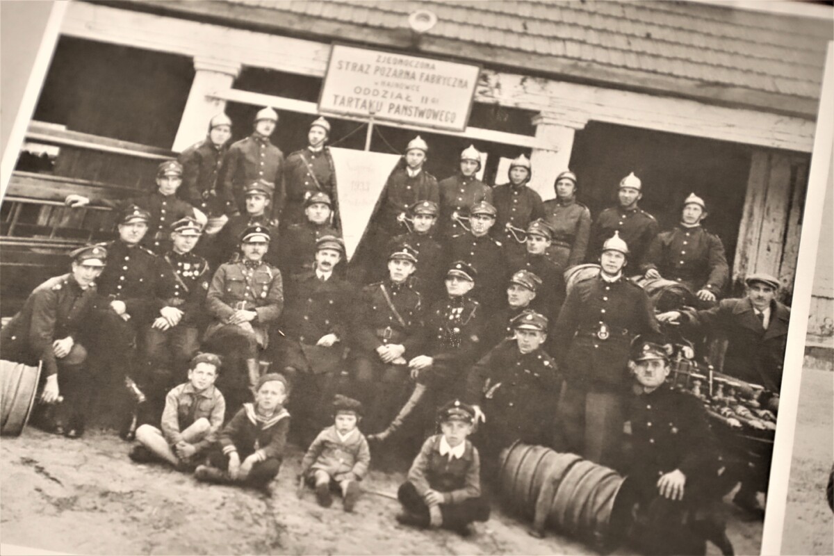 • Ochotnicza Straż Pożarna Fabryki Chemicznej, siedzą od lewej NN, dyrektor Terpentyniarni Marian Porowski, żona dyrektora Berezowskiego, dyrektor Fabryki Tartacznej Lewandowski, ks. Miodzuszewski, dyrektor Fabryki Chemicznej Berezowski, naczelnik straży chemicznej Andrzej Malinowski, druh Lange, stoją pierwszy od lewej druh Michał Szpala, drugi druh Oksentowicz, Hajnówka 1928 r.;