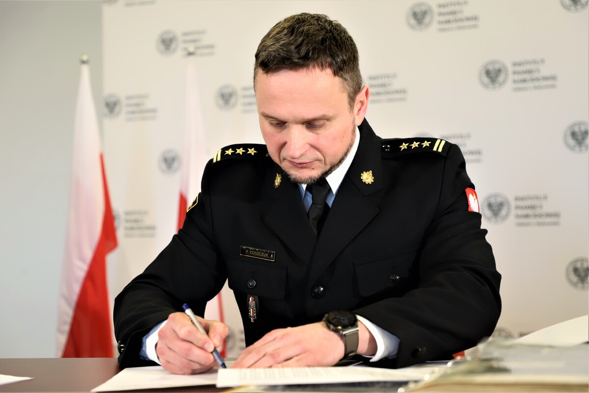 26 kwietnia 2023 roku st. bryg. Piotr Koszczuk - Komendant Powiatowy Państwowej Straży Pożarnej w Hajnówce na podstawie art. 29 ustawy o Instytucie Pamięci Narodowej przekazał dr. Markowi Jedynakowi - Dyrektorowi Oddziału Instytutu Pamięci Narodowej w Białymstoku zbiór fotografii przedstawiających formację Ochotniczej Straży Pożarnej rozwijającej się w Hajnówce w dwudziestoleciu międzywojennym przy Fabryce Chemicznej, Tartaku Państwowym, Zarządzie Kolejek Leśnych, Terpentynarni itd.