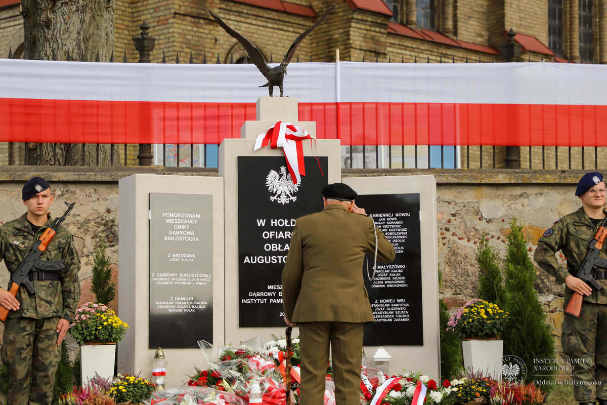 Odsłonięcie Pomnika Ofiar Obławy Augustowskiej, Dąbrowa Białostocka 13 października 2023 r., fot. Paweł Bezubik -