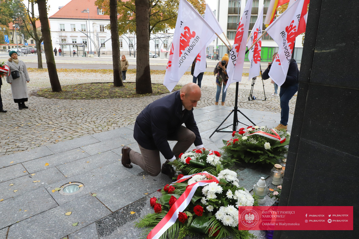 W Białymstoku przed pomnikiem bł. księdza Jerzego Popiełuszki przy Placu Jana Pawła II oraz na grobie kapłana Stanisława Suchowolca przy kościele pw. Niepokalanego Serca Maryi w Dojlidach dr Marek Jedynak, dyrektor Oddziału Instytutu Pamięci Narodowej w Białymstoku złożył kwiaty oddając dziś hołd kapelanom warszawskiej oraz białostockiej „Solidarności”. W wydarzeniu uczestniczyli również m.in. wojewoda podlaski Bohdan Paszkowski,  Marek Malinowski – Członek Zarządu Województwa Podlaskiego, wicewojewoda Bogusława Szczerbińska oraz działacze opozycji antykomunistycznej i przedstawiciele organizacji patriotycznych.
