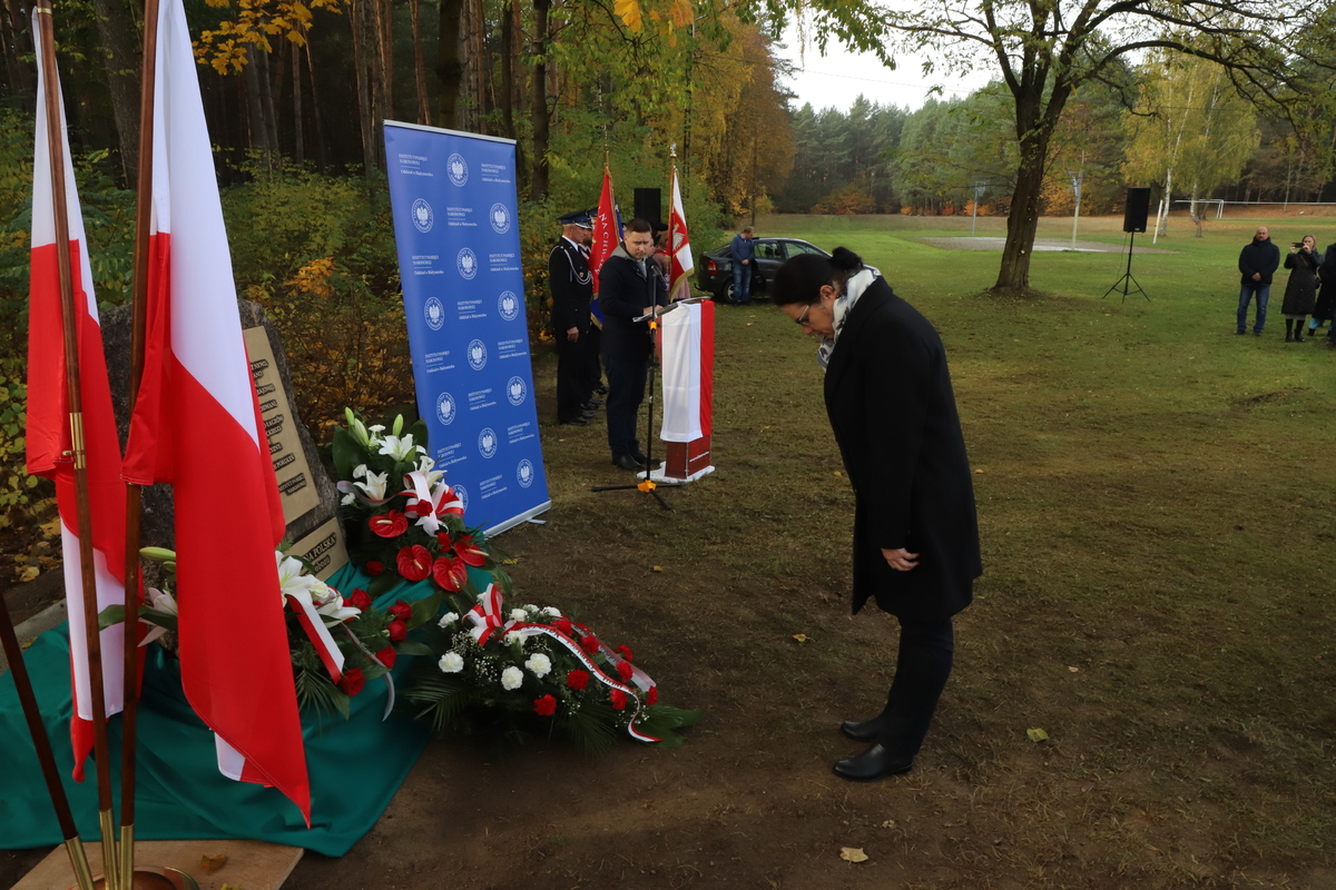 Odsłonięcie pomnika upamiętniającego więźniów tymczasowego obozu NKWD zlokalizowanego w latach 1944-1945 we wsi Gulczewo w gm. Wyszków, w pow. wyszkowskim - Gulczewo, 29 października 2023 r. -