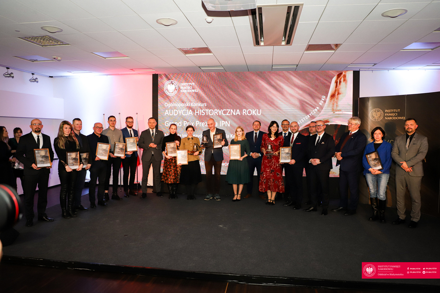 - W ciężkim procesie transformacji ustrojowej po 1989 roku dożyliśmy czasu, w którym w radiu słuchamy audycji historycznych, których autorami są wyjątkowi twórcy, realizujący niejako, pośrednio, ustawową działalność IPN. Za to jesteśmy Wam bardzo wdzięczni - zwrócił się do laureatów, wyróżnionych oraz wszystkich zebranych prezes Instytutu Pamięci Narodowej dr Karol Nawrocki, który wręczył główną nagrodę Grand Prix Prezesa IPN.