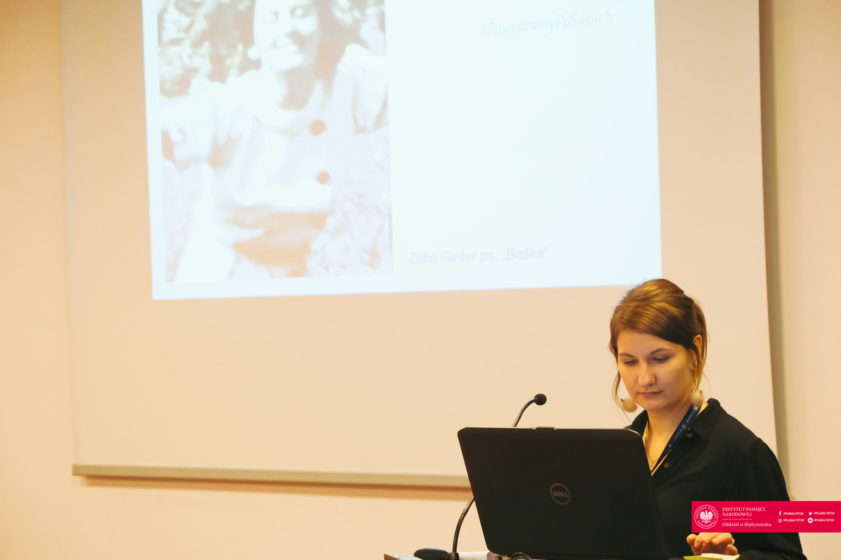 Pierwsza część spotkania dotyczyła pracy Wieloosobowego Stanowiska ds. Poszukiwań i Identyfikacji, którą poprowadziła Patrycja Czajkowska-Gurłacz - inspektor z WSdsPiI w Białymstoku. Przedstawiła ona sylwetki osób odnalezionych i zidentyfikowanych z naszego rejonu.