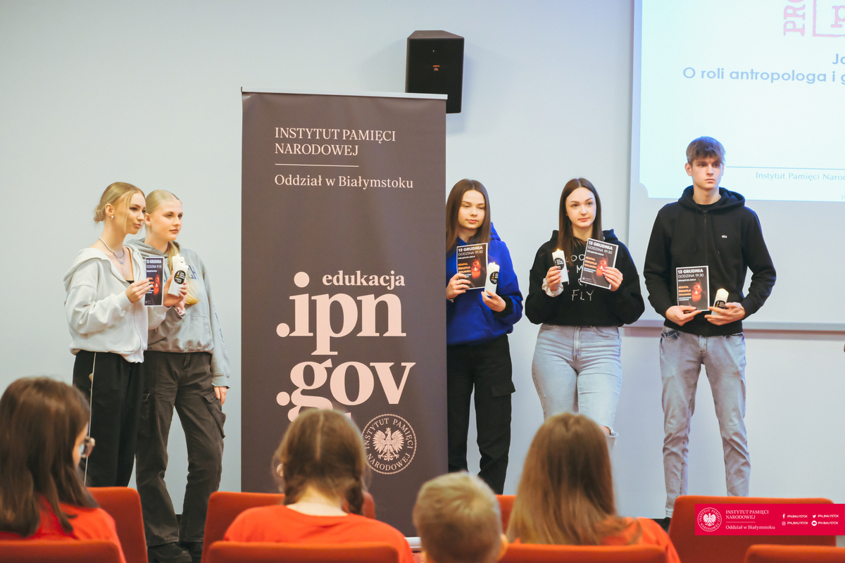 Następnie każdy z uczestników otrzymał możliwość wcielenia się przez chwilę w rolę antropologa i jego zadaniem było m.in. samodzielne określenie wieku, płci oraz tożsamości danej osoby na podstawie materiałów edukacyjnych Instytutu Pamięci Narodowej.