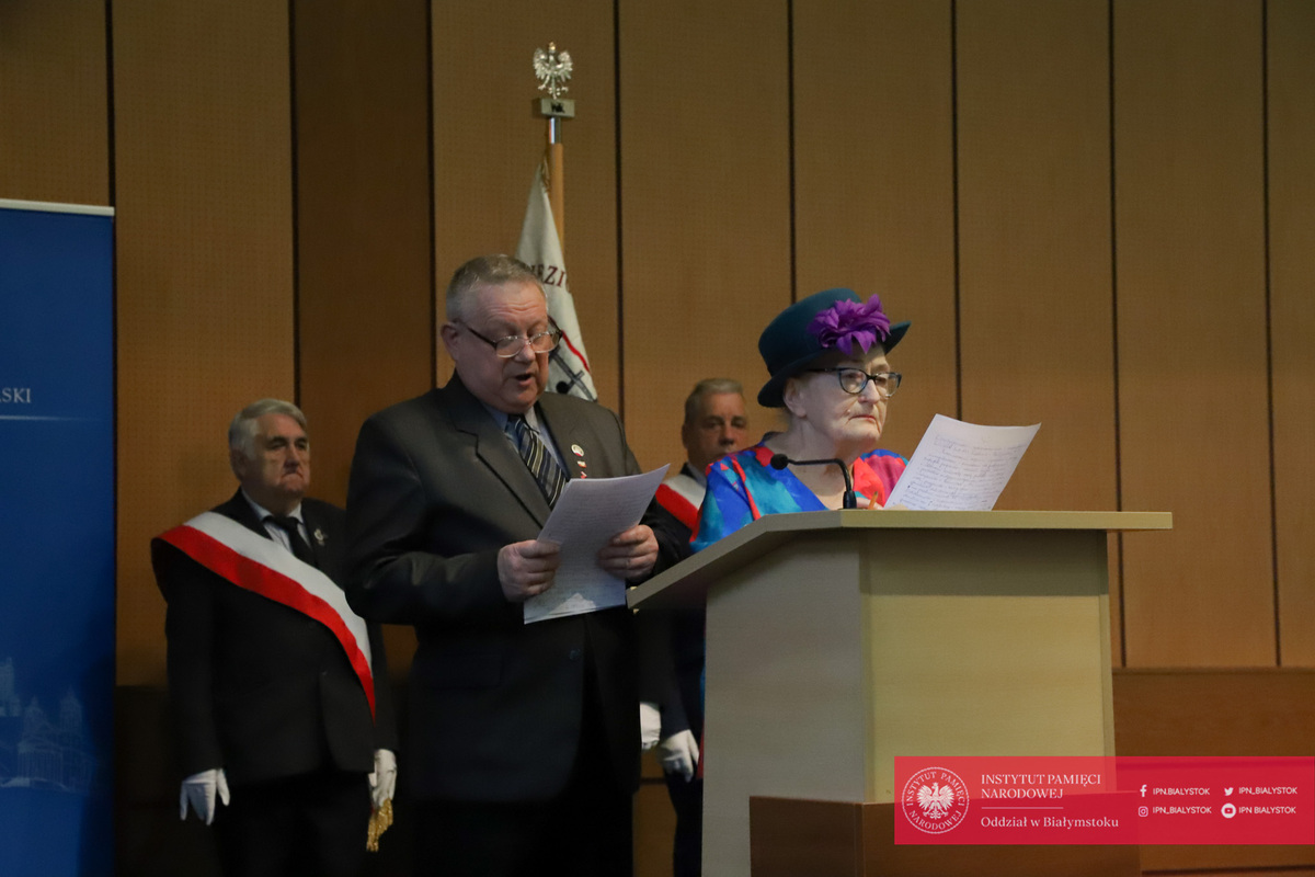 - Polska, która w 1918 roku odzyskała niepodległość trwała 20 lat. Pomimo krótkiego okresu istnienia wolnej Polsce udało się wychować tzw. pokolenie Kolumbów, które od 1939 roku nie przez pięć, ale kolejne kilkanaście walczyło o niepodległość. I to samo pokolenie w latach 80. mając 60 lat i więcej niosło pamięć o niepodległej Polsce. To w cieniu żołnierzy Armii Krajowej i innych organizacji niepodległościowych następne pokolenie Pana przewodniczącego, Pani Stanisławy, członków WIR-u, „Solidarności” dorastało, dojrzewało, uczyło się tego czym jest wolna Polska - mówił dyrektor Oddziału Instytutu Pamięci Narodowej w Białymstoku.