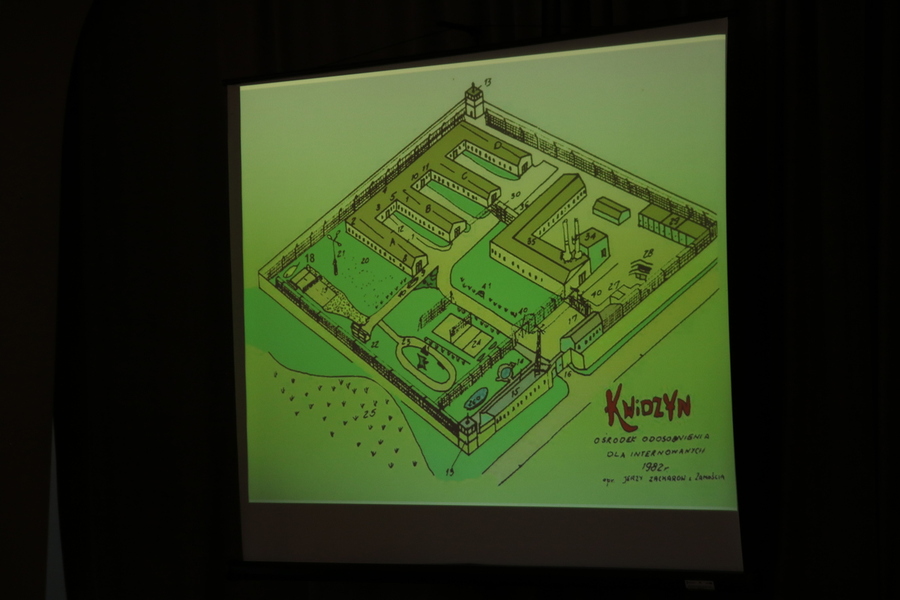 Po znakomitym wystąpieniu naszego prelegenta zaprezentowano film pt. „Więźniowe bez wyroku”, przygotowany przez Dariusza Debernego z Telewizji Polskiej S. A. Oddział Opole. Opowiada on historię trzech bohaterów opozycji antykomunistycznej, którzy za swoją patriotyczną postawę i działalność w Solidarności zostali podczas stanu wojennego osadzeni w specjalnie przygotowanych w ramach represji obozach internowania. Oglądając film można było więc poznać miejsca tak ważne w ich indywidualnych życiorysach – te, w których zostali aresztowani i te, w których byli siłą przetrzymywani jako działacze opozycji i wrogowie komunistycznego państwa polskiego. Pragniemy przypomnieć, że film ten został wyróżniony w tegorocznej Audycji Historycznej Roku.