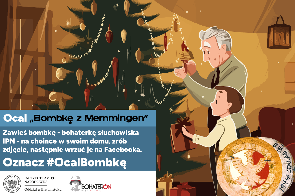 Akcja słuchowiska rozgrywa się 24 grudnia 1944 r. 16-letni Aureliusz Dembiński znajduje się w obozie jenieckim Stalag VII B Memmingen, do którego trafił po upadku Powstania Warszawskiego. Podczas obozowych Świąt wykonał ozdobę, która stała się dla niego bardzo ważna. Przypominała mu wojenne losy i ukochany kraj, o który walczył. Co roku ubieranie choinki w domu zaczynał od powieszenia swojej „bombki” z Memmingen. Aureliusz Dembiński zmarł 21 lutego 2023 r. Zachęcamy Państwa do kontynuowania tradycji, którą rozpoczął „Zagłoba”. Wspólnie zachowajmy pamięć o polskim Bohaterze!