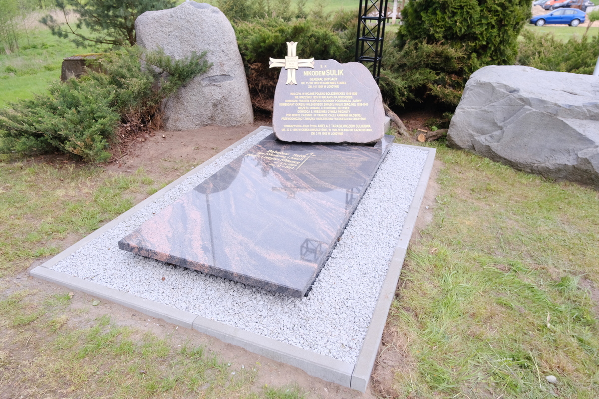 Gen. bryg. Nikodem Sulik ur. 15 sierpnia 1893 r. w Kamiennej Starej. W 1915 r. został wcielony do armii rosyjskiej. W czasie wojny polsko–bolszewickiej w stopniu podporucznika dowodził kompanią w Białostockim Pułku Strzelców (późniejszy 79. Pułk Piechoty). W okresie międzywojennym pozostał w Wojsku Polskim jako oficer zawodowy. Od 1933 r. był oficerem Korpusu Ochrony Pogranicza. W czasie wojny obronnej 1939 r. w stopniu podpułkownika dowodził Pułkiem KOP ,,Sarny”. Uniknął niewoli i rozpoczął działalność konspiracyjną w Służbie Zwycięstwu Polski, a następnie Związku Walki Zbrojnej. Pełnił funkcję komendanta Okręgu Wilno ZWZ. Używał pseudonimów ,,Ładyna”, ,,Jodko”, ,,Jod”, ,,Karol” i ,,Sarnowski”. Został aresztowany przez sowietów 13 kwietnia 1941 r. Skazano go na karę śmierci, której nie wykonano ze względu na podpisany układ Sikorski–Majski. Wstąpił do Armii Polskiej w ZSRS. Od sierpnia 1943 r. dowodził 5. Kresową Dywizją Piechoty. Funkcję tę pełnił do końca wojny, otrzymując 1 marca 1944 r. awans na stopień generała brygady. Po wojnie pozostał na emigracji. Zmarł w Londynie 14 stycznia 1954 r. Prochy generała Nikodema Sulika oraz jego żony Anieli Tarasiewicz sprowadzono do Polski 12 września 1993 r. i złożono w grobie przy kościele pw. Świętej Anny w Kamiennej Starej.