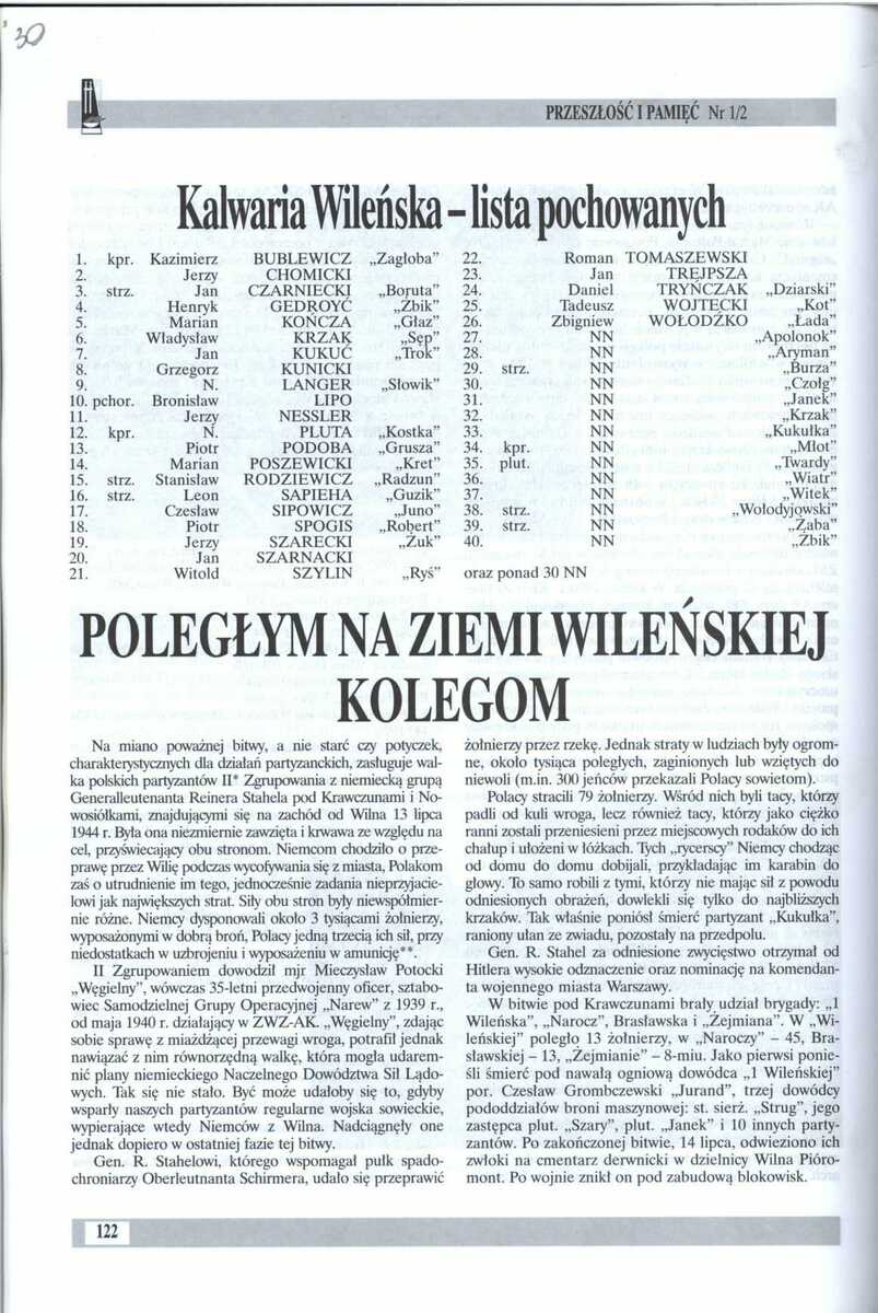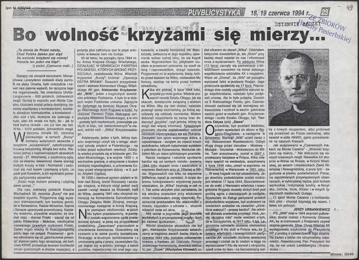 - Zbiór artykułów prasowych dotyczących Armii Krajowej na Wileńszczyźnie. Sygnatura: IPN Bi 430/10.