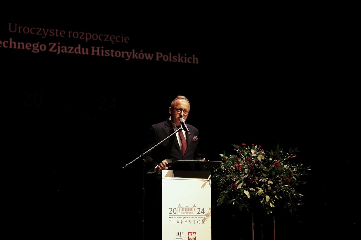 Człowiek jest badaczem historii, dlatego jesteśmy dzisiaj tutaj w Białymstoku, uczestniczymy w Powszechnym Zjeździe Historyków Polskich, bo naszym zawodem jest badanie historii. Robimy to z całą pewnością dlatego, że rozumiemy znaczenie historii, wiemy jak ważna jest pamięć. Pamięć o przeszłych wydarzeniach, o przeszłych pokoleniach ale robimy to też dlatego, że uważamy, że pamięć służy też przyszłości. Więc z jednej strony pamięć, a z drugiej strony historykowi przyświeca jeden główny cel dążenie do poznania prawdy. Pamięć i prawda to dwa filary, które konstytuują działanie historyka. Szczególna odpowiedzialność, która spoczywa na historykach związana jest z edukacją młodego pokolenia. Działania edukacyjne są kluczowe dla przyszłych pokoleń i to jest nasze zadanie, aby te działania edukacyjne, popularyzatorskie prowadzić.