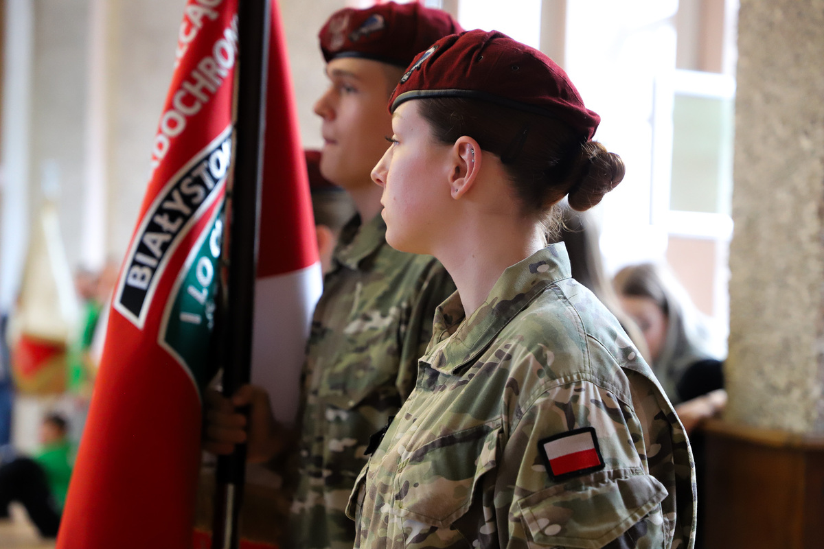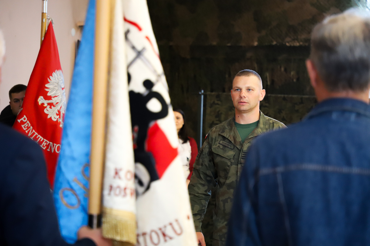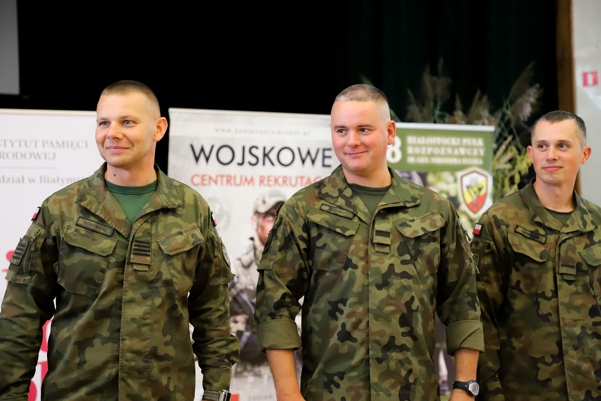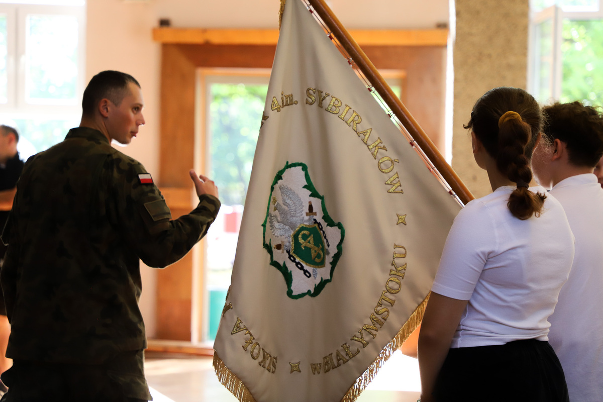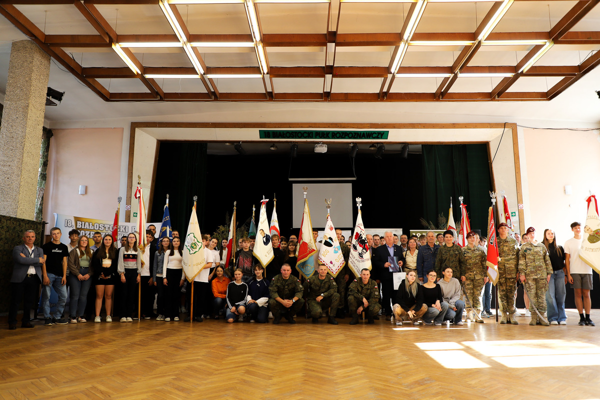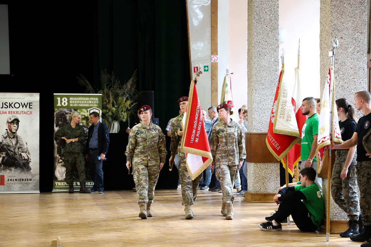Po oficjalnym powitaniu przybyłych uczestników głos zabrali: Ewa Kulikowska – wicewojewoda podlaski, płk Dariusz Szorc – szef Ośrodka Zamiejscowego Centralnego Wojskowego Centrum Rekrutacji, ppłk Tomasz Fuk – zastępca dowódcy 18. Białostockiego Pułku Rozpoznawczego i dr Marek Jedynak – dyrektor Oddziału Instytutu Pamięci Narodowej w Białymstoku. Część merytoryczną, dotyczącą tematyki sztandarowej, polskich symboli narodowych, ubioru pocztów sztandarowych i porad dietetycznych poprowadzili: Marek Gajewski z Oddziałowego Biura Edukacyjnego IPN w Białymstoku, kpt. Marcin Burzyński z 18. Białostockiego Pułku Rozpoznawczego, ppor. Marta Zapolska-Rogaczewska z Wojskowego Centrum Rekrutacji w Białymstoku oraz nasz gość specjalny – kpr. Wojciech Nowicki, złoty medalista olimpijski z Tokio, brązowy medalista Igrzysk Olimpijskich w Rio de Janerio i wielokrotny medalista mistrzostw świta i Europy, wybitny lekkoatleta z Białegostoku, mający na swoim koncie wielkie osiągnięcia w jednej z siłowych dyscyplin sportowych jaką jest rzut młotem. Trafne porady dietetyczne mistrza zyskały uznanie wszystkich zebranych. Obecność z nami tak znakomitego sportowca była wyjątkową okazją do zadawania pytań dotyczących kariery sportowej czy zrobienia pamiątkowego zdjęcia.