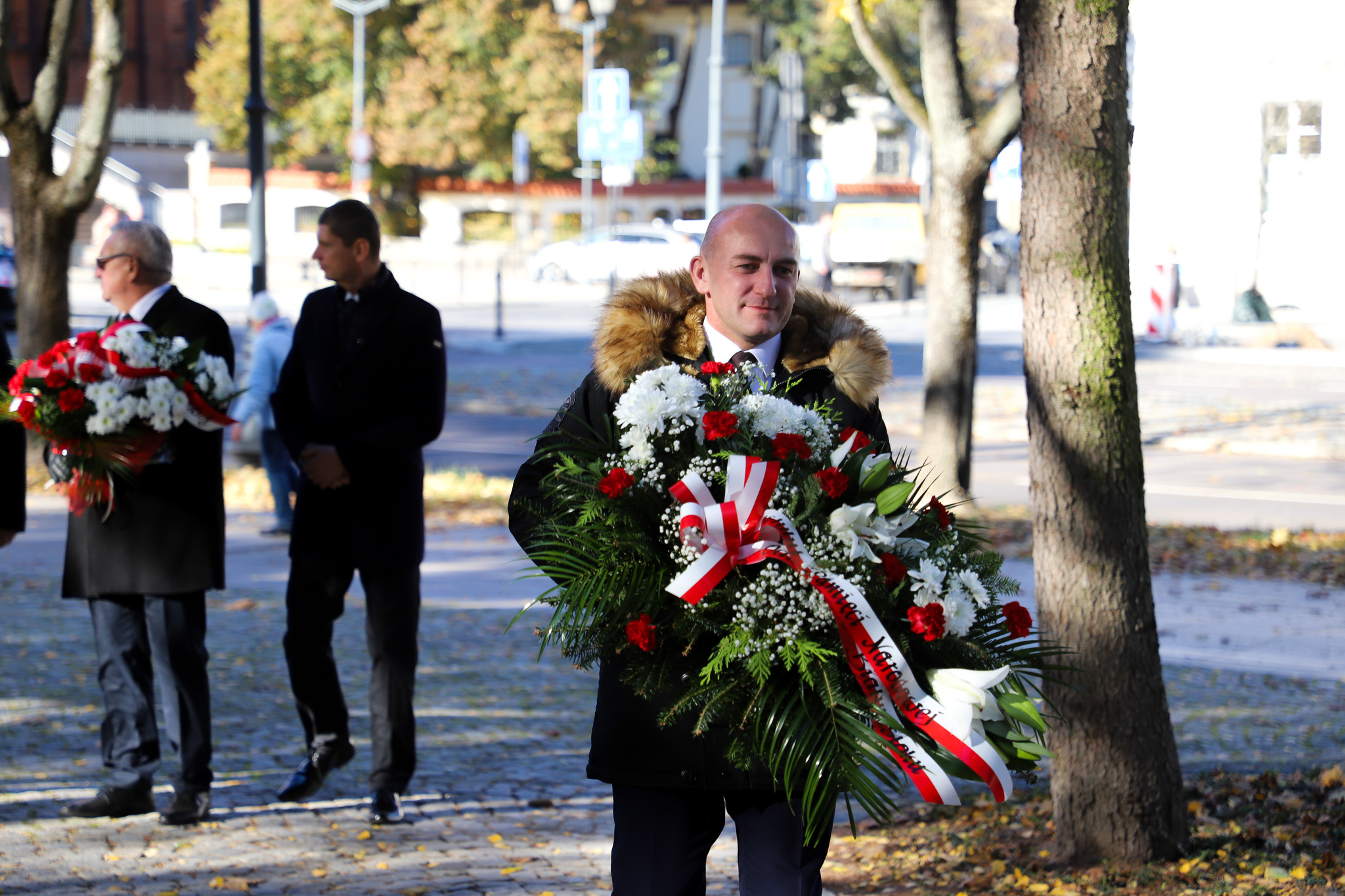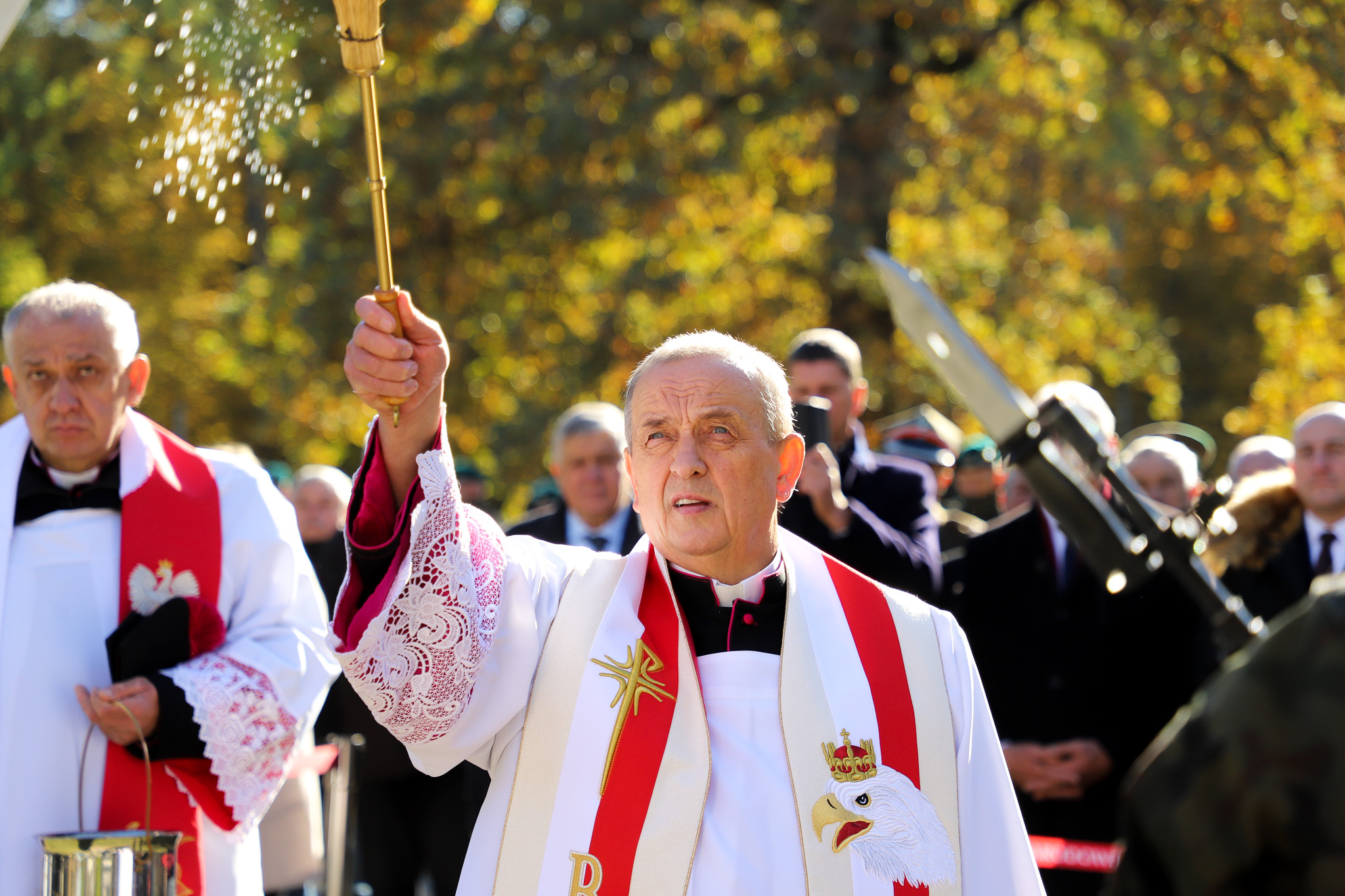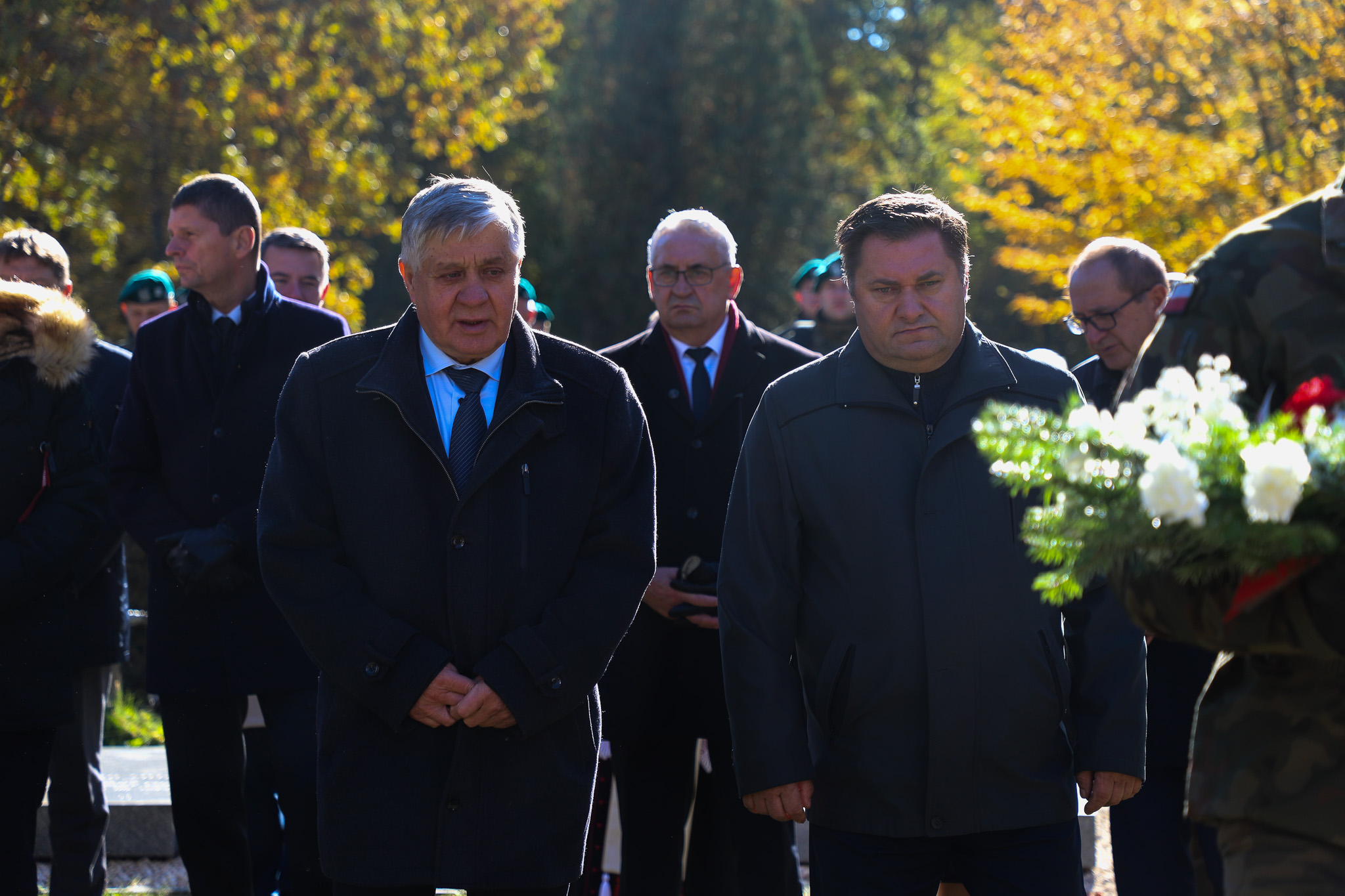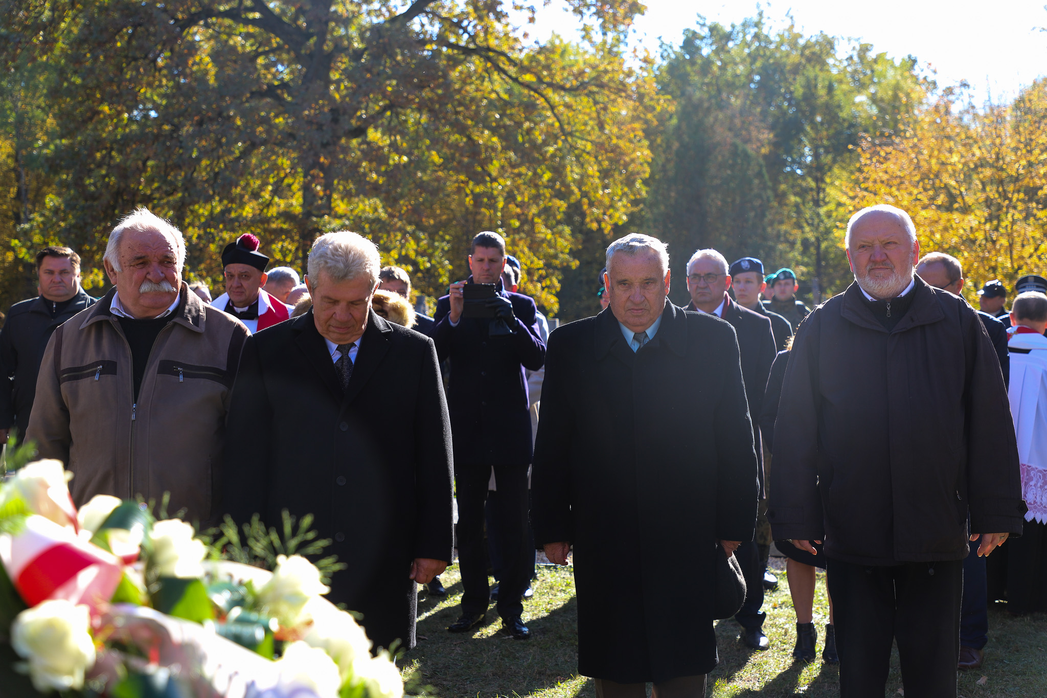 Na zakończenie uroczystości delegacje złożyły wieńce przy odrestaurowanym krzyżu. W obchodach wzięli udział parlamentarzyści, władze samorządowe, przedstawiciele służb mundurowych, instytucji kulturalnych i oświatowych, młodzież oraz licznie zgromadzeni członkowie lokalnej wspólnoty parafialnej. Wydarzeniu towarzyszyła asysta wojskowa 18. Białostockiego Pułku Rozpoznawczego, zaś oprawę muzyczną zapewniła Orkiestra Wojskowa z Giżycka.