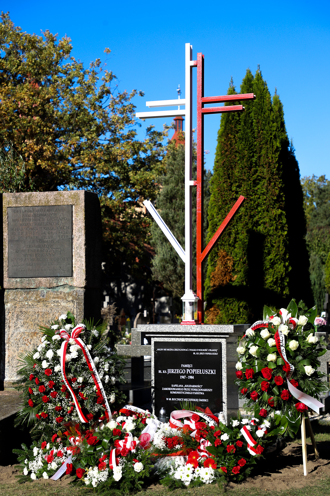 W 40. rocznicę męczeńskiej śmierci kapłana ,,Solidarności” Oddział Instytutu Pamięci Narodowej w Białymstoku, we współpracy z Parafią św. Cyryla i Metodego w Hajnówce oraz NSZZ „Solidarność” Region Podlaski zorganizował uroczystość odsłonięcia i poświęcenia krzyża upamiętniającego bł. ks. Jerzego Popiełuszkę, znajdującego się na cmentarzu katolickim w Hajnówce. Upamiętnienie, znajdujące się na terenie nekropolii od 1985 r., zostało odnowione staraniem Oddziałowego Biura Upamiętniania Walk i Męczeństwa Instytutu Pamięci Narodowej w Białymstoku.