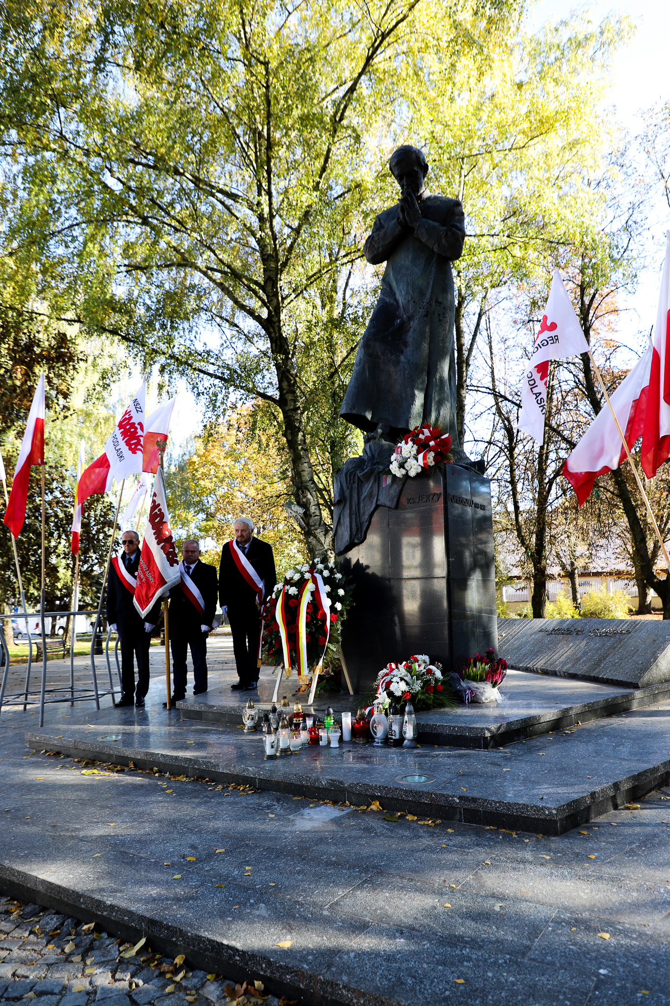 Po zakończeniu uroczystości w Hajnówce, dyrektor Oddziału Instytutu Pamięci Narodowej w Białymstoku dr Marek Jedynak złożył kwiaty pod pomnikiem bł. ks. Jerzego Popiełuszki w Białymstoku.