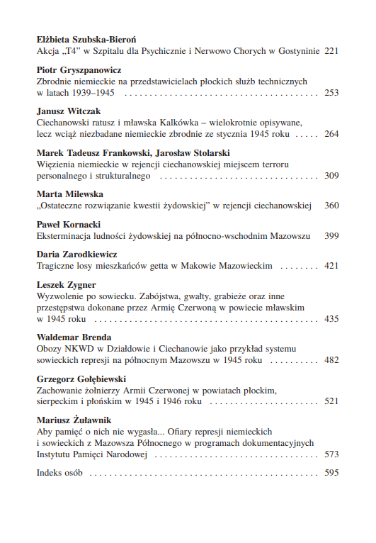 W niniejszej publikacji ukazano zasługującą na utrwalenie postawę ludzi wobec agresorów i postępowanie tych ostatnich na podbijanych we wrześniu 1939 r. obszarach. Opór wobec agresji niemieckiej, a następnie mimo braku sił i środków także wobec Sowietów był początkiem tragedii trwającej przez cały okres II wojny światowej. Obu okupantów łączyło prowadzenie masowych aresztowań wśród byłych żołnierzy, policjantów, sędziów, działaczy politycznych, urzędników państwowych i samorządowych oraz księży. Jak pokazał czas, nawet wyparcie z Polski Niemców nie było kresem represji i prześladowań, o czym świadczą poczynania Armii Czerwonej i NKWD w 1944 i 1945 r.
