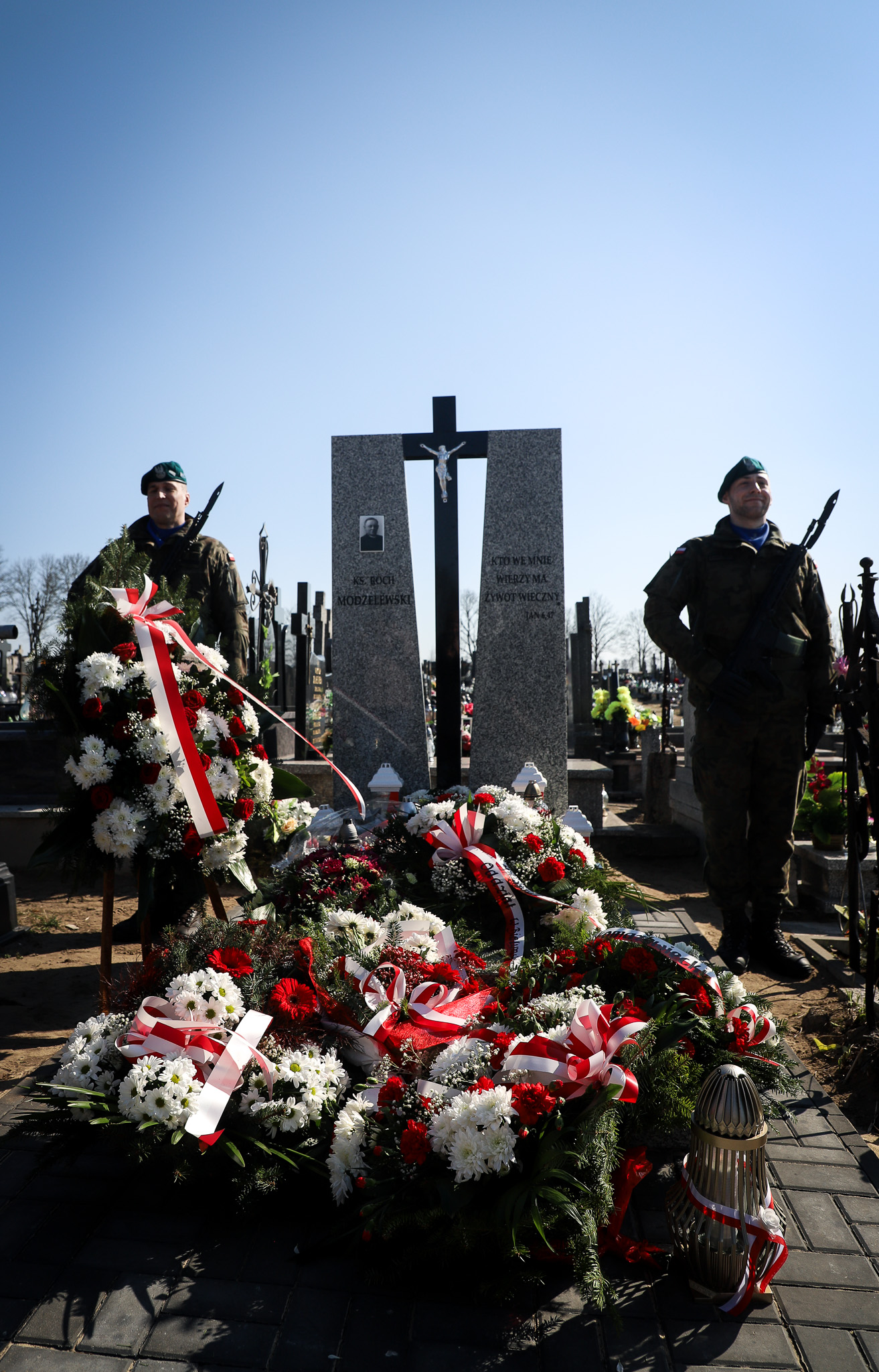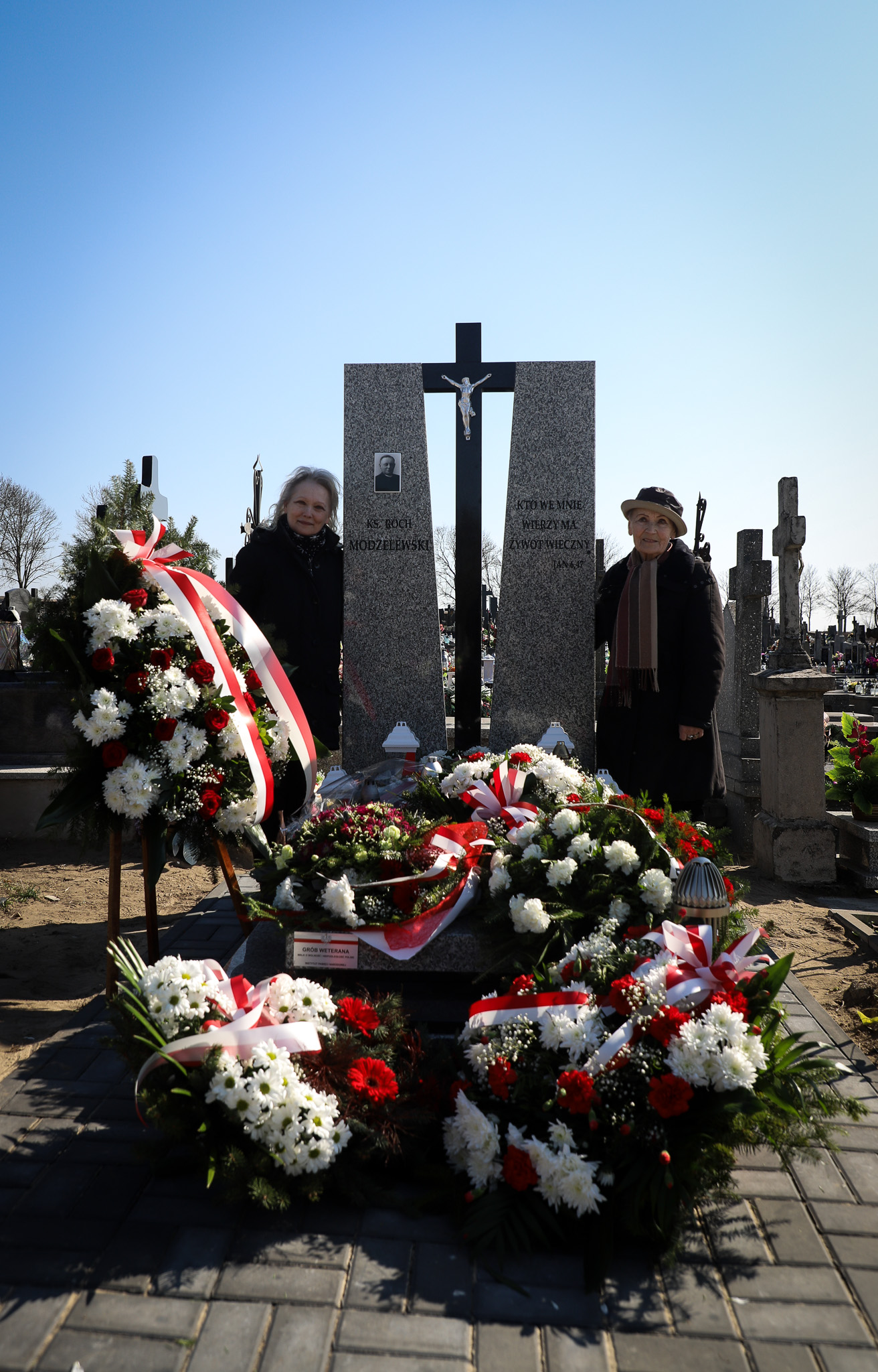 Dalsza część uroczystości miała miejsce na cmentarzu parafialnym, przy mogile Bohatera. Dyrektor Oddziału Instytutu Pamięci Narodowej w Białymstoku dr Marek Jedynak wręczył obecnym na wydarzeniu członkom rodziny ks. Rocha Modzelewskiego kopie zawiadomień o wpisie grobu do ewidencji prowadzonej przez Prezesa Instytutu Pamięci Narodowej. Upamiętnienie poświęcił ks. bp. Janusz Stepnowski. Na zakończenie obchodów zgromadzeni złożyli wieńce i zapalili znicze na grobie ks. Rocha Modzelewskiego.