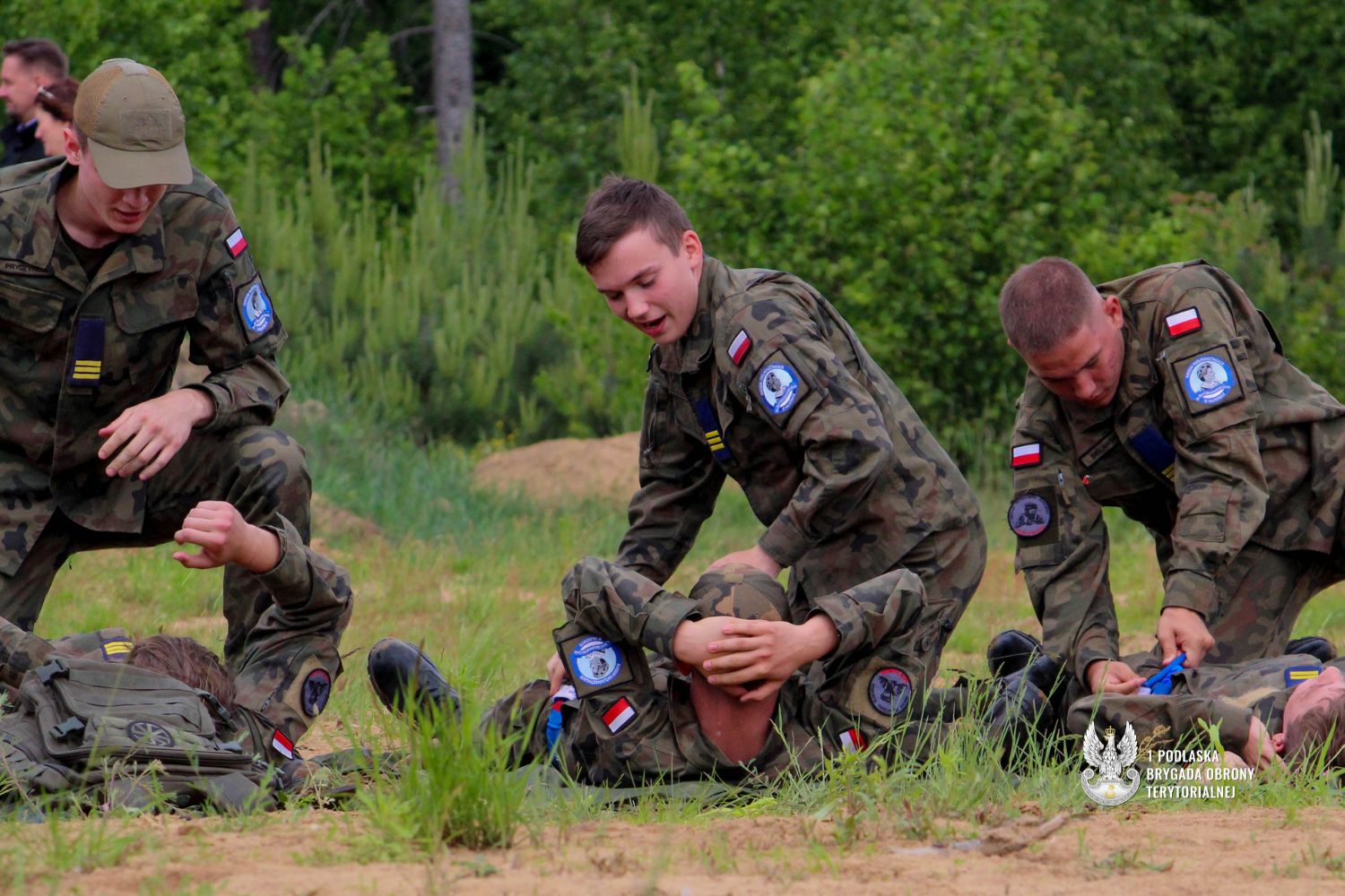 Zajęcia z instruktorami 1 PBOT miały miejsce w dniach 5-6 czerwca i stanowiły podsumowanie tegorocznej edycji projektu „W służbie Ojczyźnie”. Pierwszego dnia w szkoleniu wzięły udział 12-osobowe sekcje cywilne, natomiast kolejnego – uczniowie z klas o profilu mundurowym. Po uroczystym powitaniu młodzieży i podziale sekcji na wyznaczone punkty nauczania odbyła się część szkoleniowa. Następnie uczniowie wzięli udział w rywalizacji sportowo-wojskowej, składającej się z pięciu konkurencji: ładowanie magazynka MSBS GROT amunicją treningową, rzut granatem w postawie stojącej, tamowanie krwotoku za pomocą stazy taktycznej, ewakuacja uszkodzonego pojazdu na odległość 50 m oraz ewakuacja rannego z pola walki na noszach. Podczas trzech pierwszych konkurencji dodatkowym utrudnieniem była konieczność wykonania zadania w kamizelce kuloodpornej oraz hełmie balistycznym.