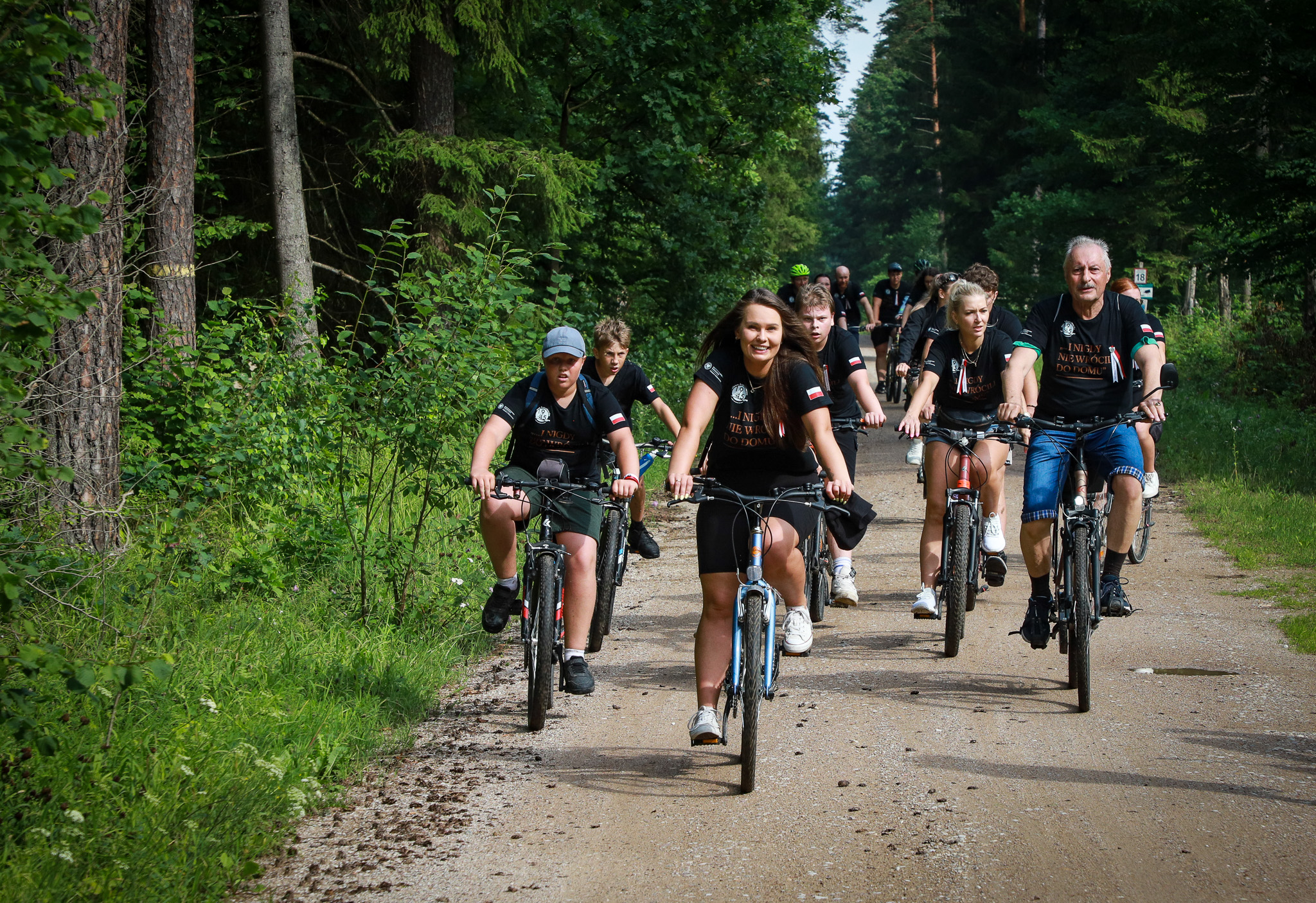 Następnie uczestnicy Rajdu wyruszyli w trasę liczącą 21 km. Każdy z nich otrzymał pamiątkową koszulkę, pakiet startowy oraz wstążkę z nazwiskiem Ofiary Obławy Augustowskiej, którą po powrocie rowerzyści zawiesili na przygotowanej wstędze pamięci.