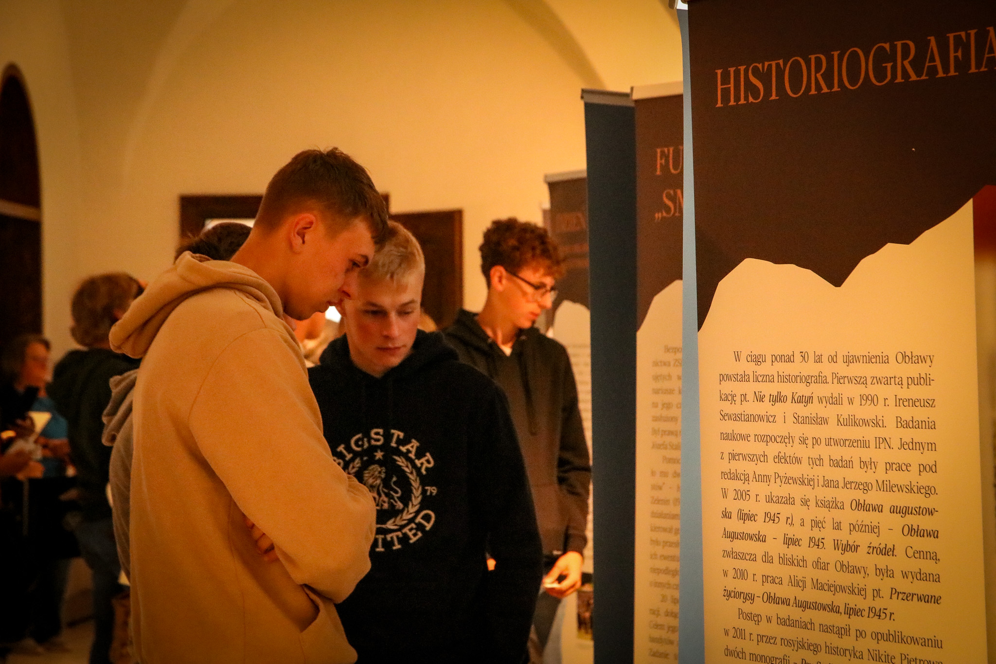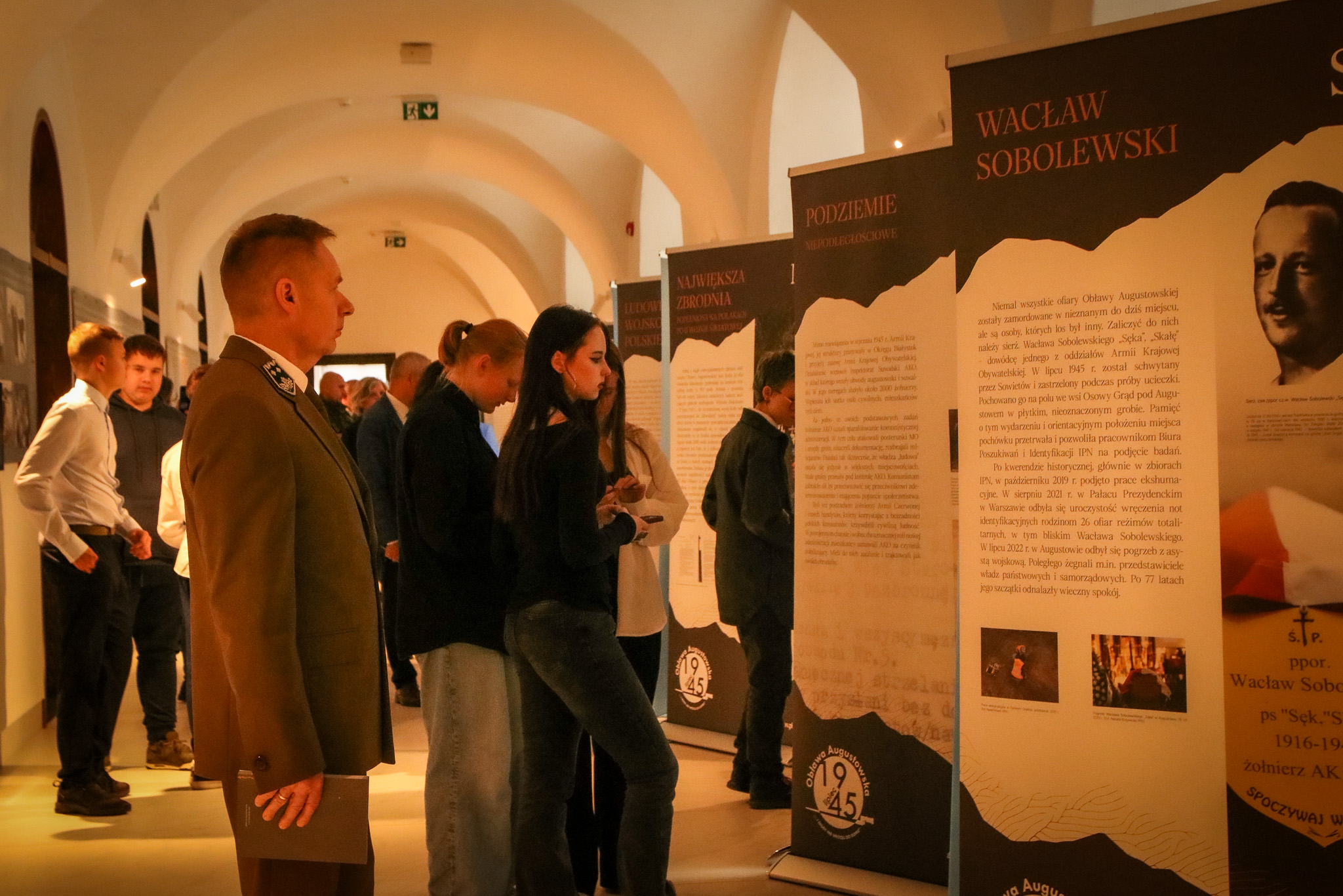 Następnie autor wystawy Jarosław Wasilewski, pracownik Oddziałowego Biura Badań Historycznych IPN w Białymstoku, omówił jej założenia i najważniejsze zagadnienia. W trakcie wernisażu uczniowie ze szkoły podstawowej w Sejnach pod opieką nauczyciela pani Teresy Ziniewicz-Tur zostali oprowadzeni po wystawie przez Jarosława Wasilewskiego. Autentyczne zainteresowanie młodzieży tematem znalazło wyraz w licznych pytaniach kierowanych do autora wystawy.