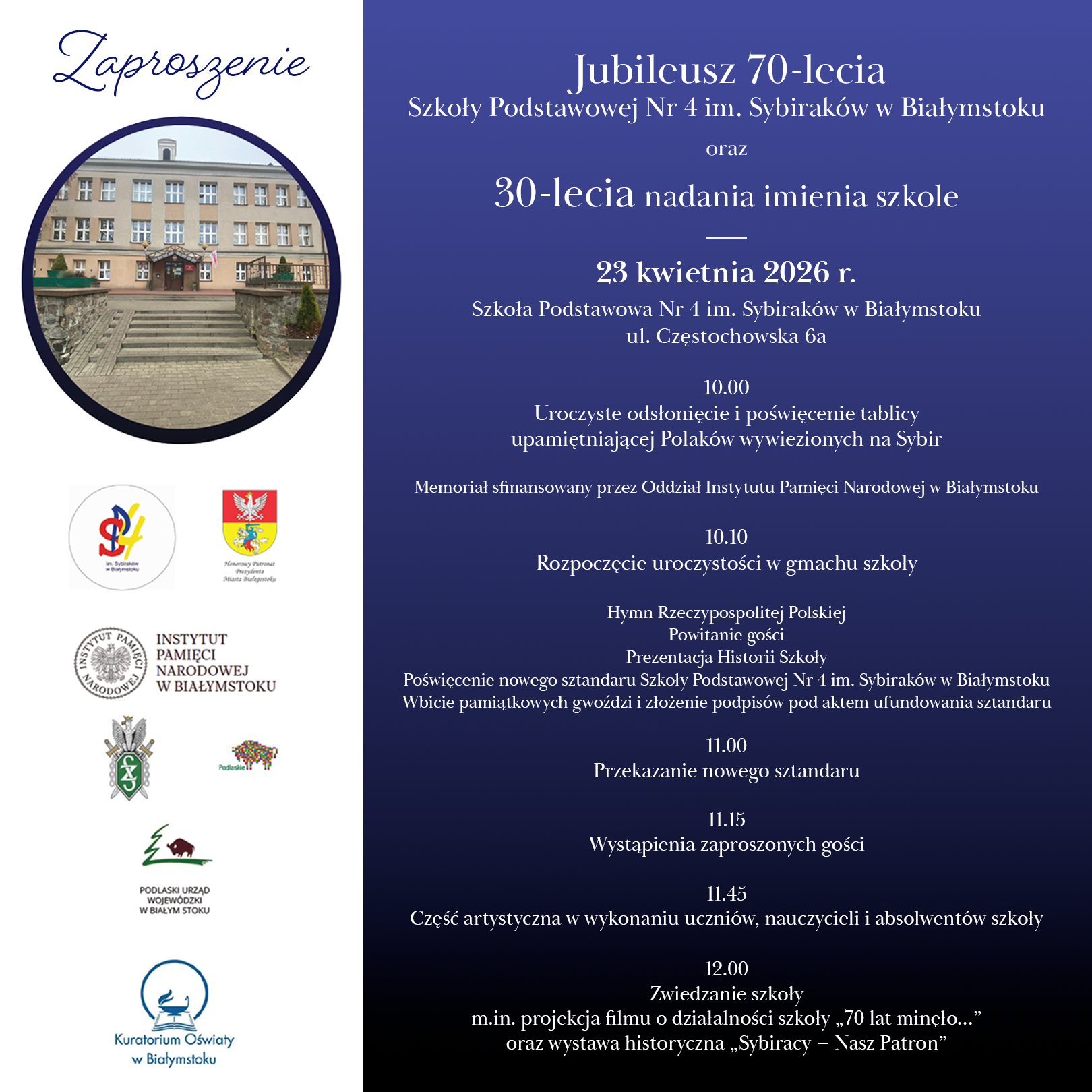 Inicjatorem powstania memoriału jest społeczność Szkoły Podstawowej nr 4 im. Sybiraków w Białymstoku, która od 21 września 1996 r. nosi to imię. Tablica została wykonana staraniem Oddziałowego Biura Upamiętniania Walk i Męczeństwa Instytutu Pamięci Narodowej w Białymstoku.