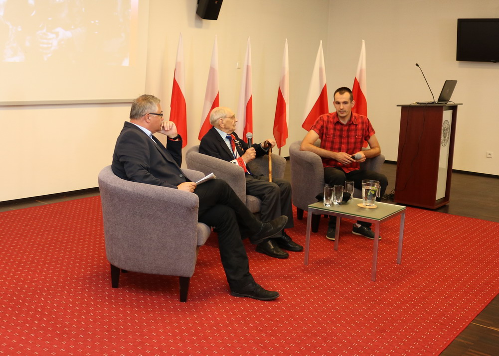 Po upadku Powstania por. Mieczysław Wroczyński trafił do obozu jenieckiego, skąd został uwolniony przez wojska amerykańskie. Po wojnie powrócił do kraju. Mimo podeszłego wieku (98 lat!), jest osobą pełną ciepła i optymizmu, co zostało docenione przez uczestników spotkania. Wzruszona młodzież ustawiła się w długą kolejkę, by podziękować gościowi, nie tylko za obecność i opowieści, ale także za jego piękną, patriotyczną postawę w czasach trudnych.