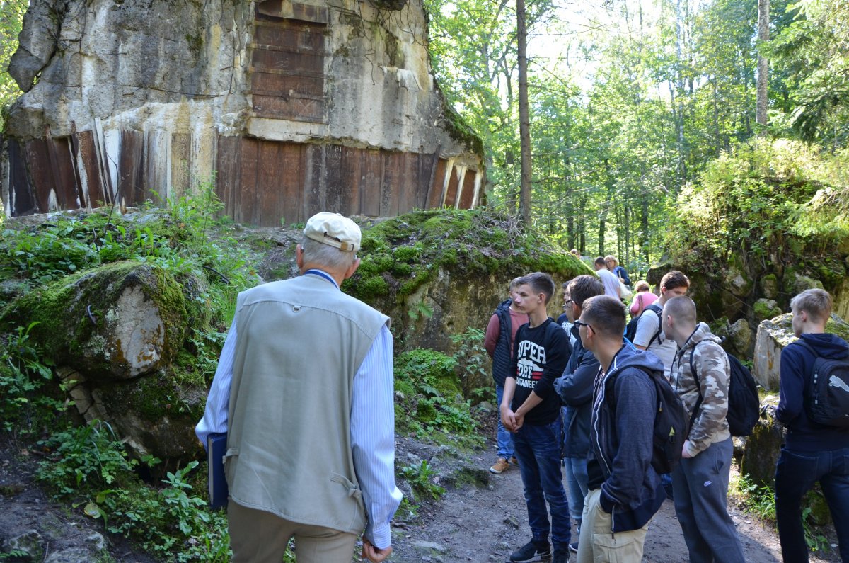 Westerplatte było kolejnym punktem na trasie wyjazdu edukacyjnego. Dzięki uprzejmości pracowników z Muzeum Westerplatte i Wojny 1939, Oddziału Muzeum II Wojny Światowej w Gdańsku Pani Sylwii Paszko i Panu Adamowi Dziewanowskiemu, archeologowi, grupa mogła z bliska przyjrzeć się pracom archeologicznym prowadzonym na terenie tzw. „Starych koszar” i zapoznać się z efektami pracy archeologów. Pan Adam zaprezentował znaleziska, wśród których znalazły się liczne guziki wojskowe, orły czapkowe oraz orzełek żołnierzy 63. Pułku Piechoty z Torunia. Pani Sylwia dodatkowo oprowadziła grupę po terenie byłej Wojskowej Składnicy Tranzytowej zajmującymi opowieściami na temat walk prowadzonych we wrześniu 1939 r.