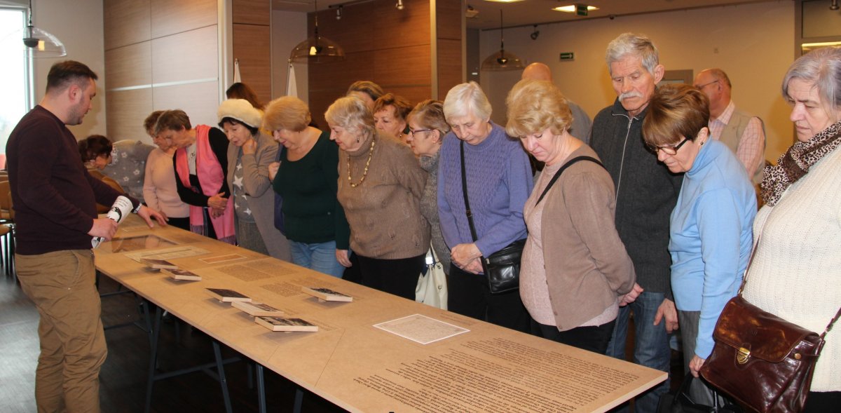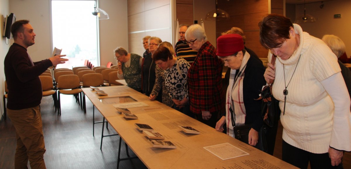 W dniu 6 lutego 2019 r. w siedzibie Oddziału Instytutu Pamięci Narodowej w Białymstoku gościli przedstawiciele białostockiego Klubu Seniora przy Miejskim Ośrodku Pomocy Rodzinie. Naczelnik Biura Edukacji Narodowej IPN w Białymstoku dr Paweł Warot powitał przybyłych wykładem na temat historii, zadań IPN oraz roli, jaką Instytut odgrywa w realizowanej obecnie przez państwo polskie polityce historycznej. Po wykładzie przybyli goście mieli możliwość zapoznania się z prezentowaną obecnie w Oddziale wystawą dotyczącą życia i działalności Szmula Zygielbojma. Zwiedzającym towarzyszył pracownik OBEN IPN Damian Marculewicz, który przedstawiał sylwetkę bohatera wystawy. Następnie uczestnicy mieli możliwość zwiedzenia archiwum, gdzie zapoznali się bliżej z pracą archiwistów, a także z nowoczesnymi sposobami zabezpieczania dokumentacji.