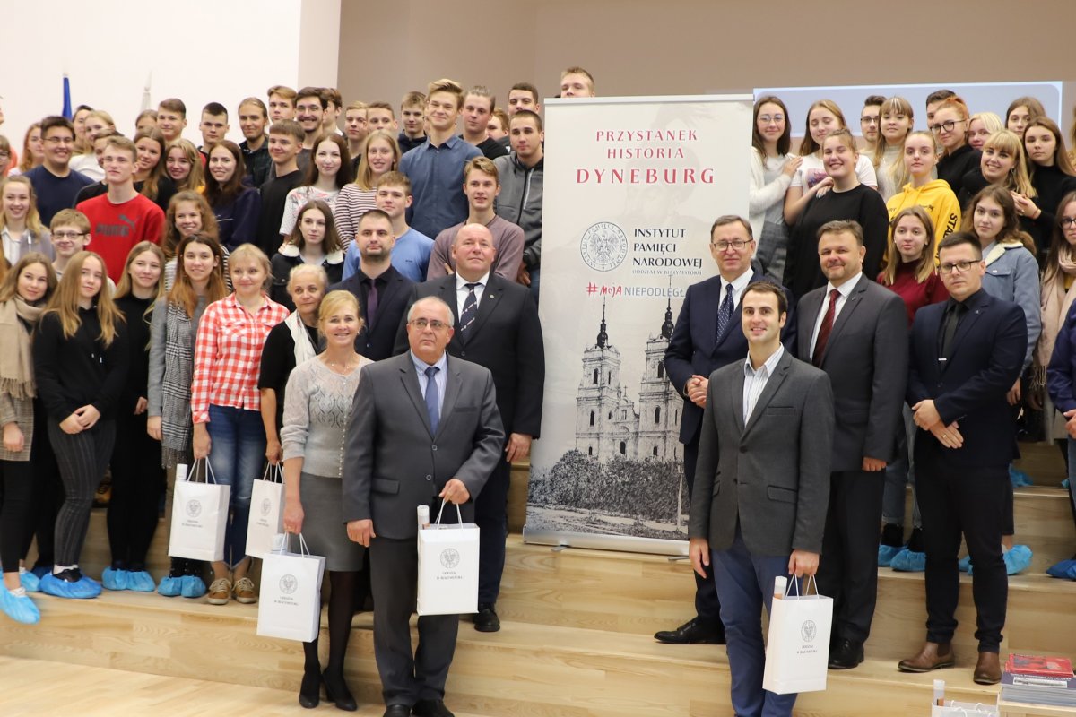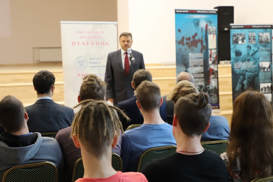 Otwierając spotkanie, prezes IPN dr Jarosław Szarek przedstawił działalność edukacyjną Instytutu skierowaną do Polaków poza granicami kraju. Scharakteryzował idee kultywowania pamięci wśród środowisk polskich i polonijnych rozsianych po całym świecie. Adam Hlebowicz – dyrektor Biura Edukacji Narodowej IPN – nakreślił w swoim wystąpieniu przedsięwzięcie związane z powstającym aktualnie słownikiem inteligencji polskiej na Kresach Wschodnich, zachęcając polskich mieszkańców Dyneburga do włączenia się w realizowany projekt.