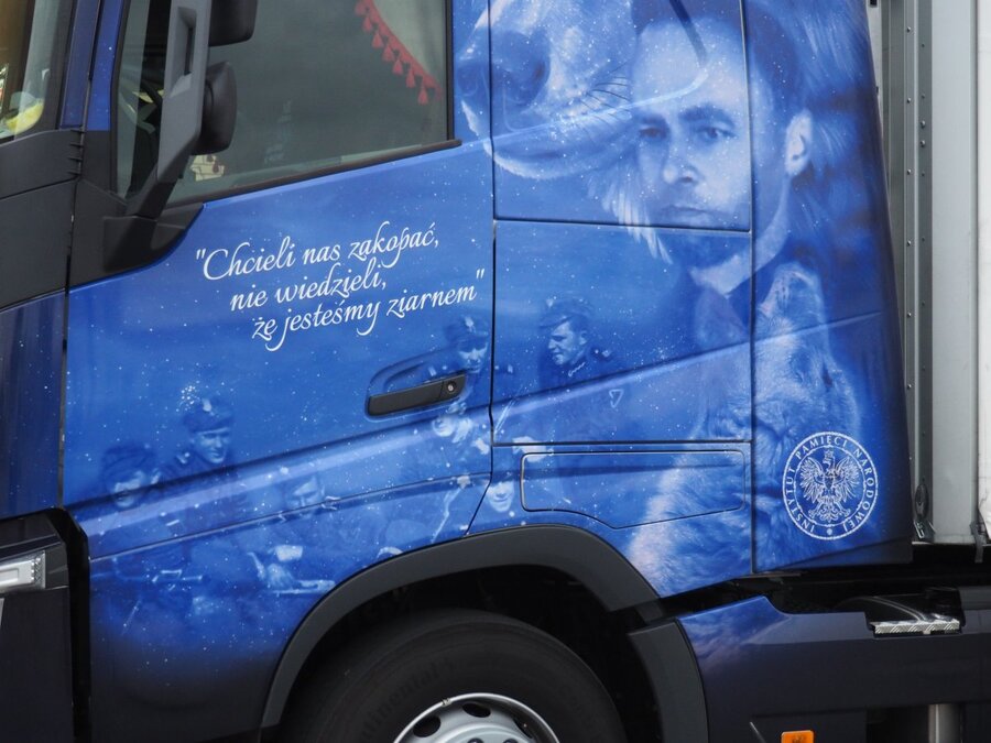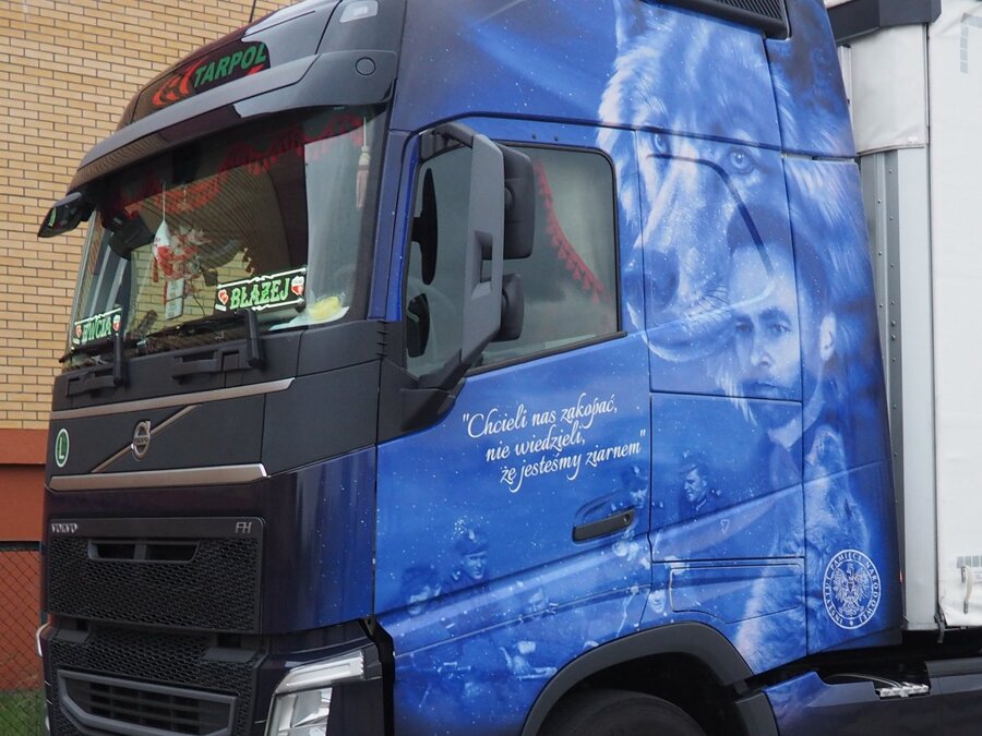 Wizerunki ,,Żołnierzy Wyklętych’’ na samochodach ciężarowych w Europie.