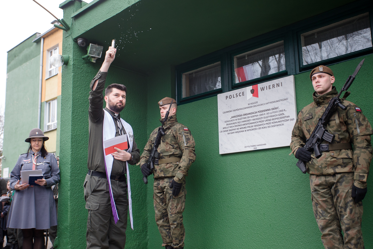 Uroczystość odsłonięcia i poświęcenia tablicy upamiętniającej Harcerską Organizację Podziemną „ISKRA” – Olsztyn, 2 marca 2020