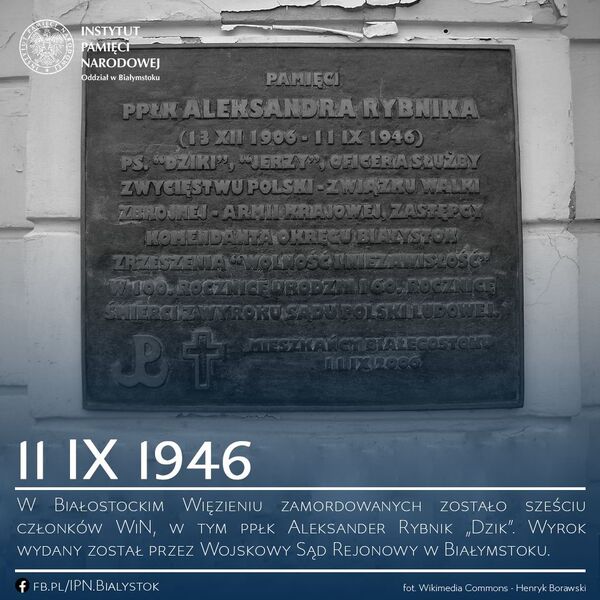 11/09/2020Pamiętamy74. rocznica śmierci ppłk Aleksandra Rybnika – Białystok, 11 września 2020