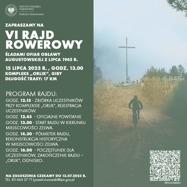 30/06/2023RajdZapraszamy na VI Rajd Rowerowy Śladami Ofiar Obławy Augustowskiej z lipca 1945 r. - Giby, 15 lipca 2023 r.