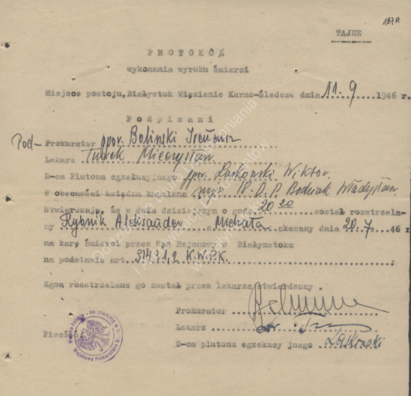 11/09/2023KalendariumKalendarium: Wyroki śmierci na terenie Więzienia Karno-Śledczego w Białymstoku, - 11 września 1946 r.